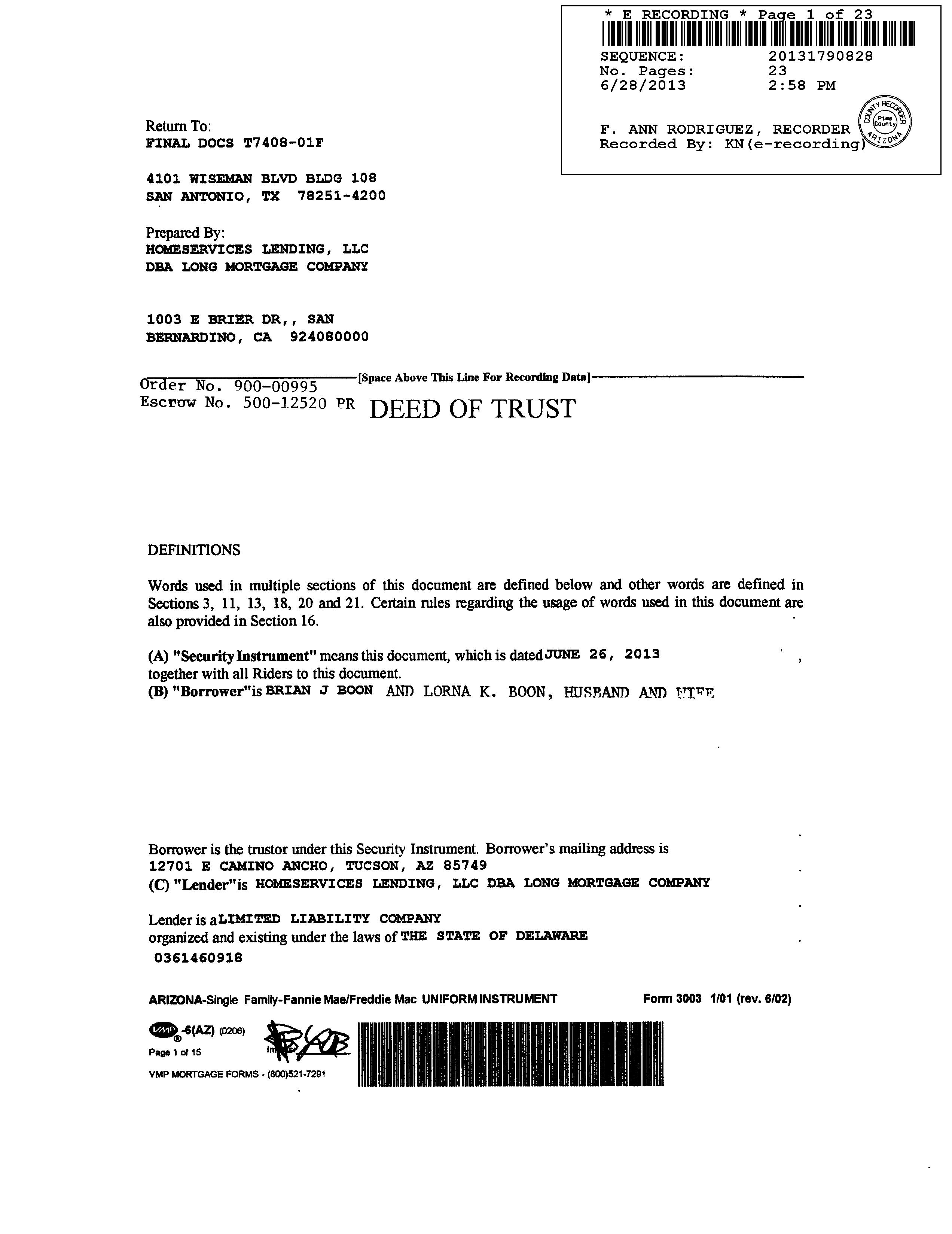 Owner Name : Boon Brian J / Boon Lorna K