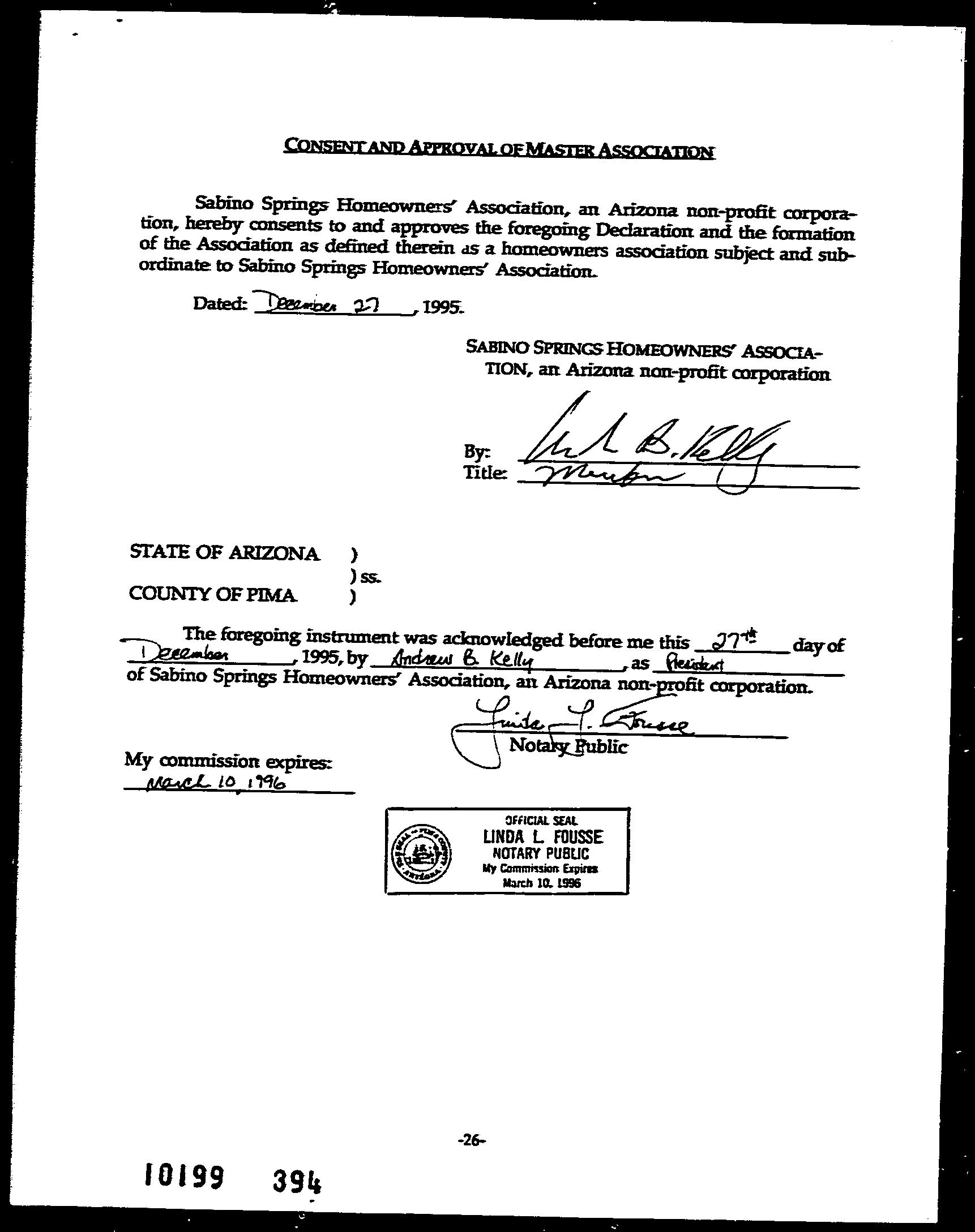 Owner Name : Mc Clard Robert D Subdivision : Sabino Hills