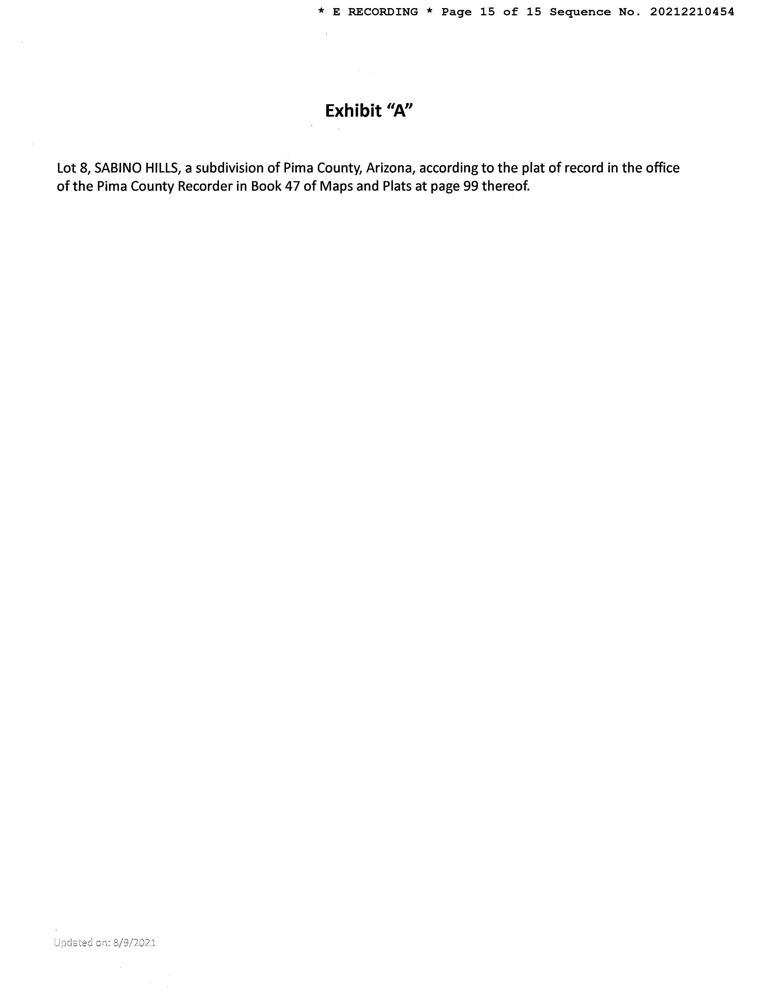Legal Description : Sabino Hills (resub) Lot 0008
