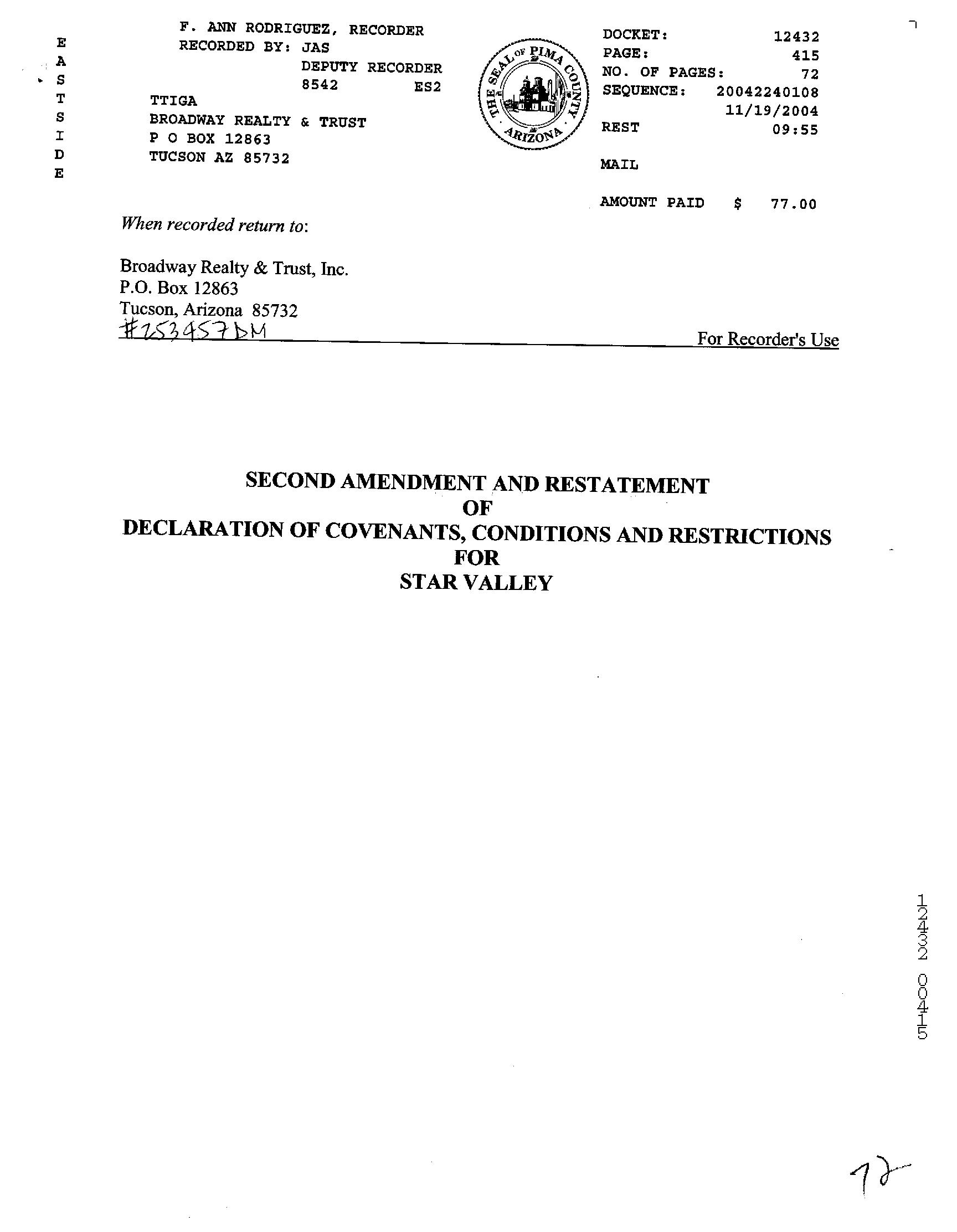 Owner Name : Sentner Theodore G Subdivision : Star Velley