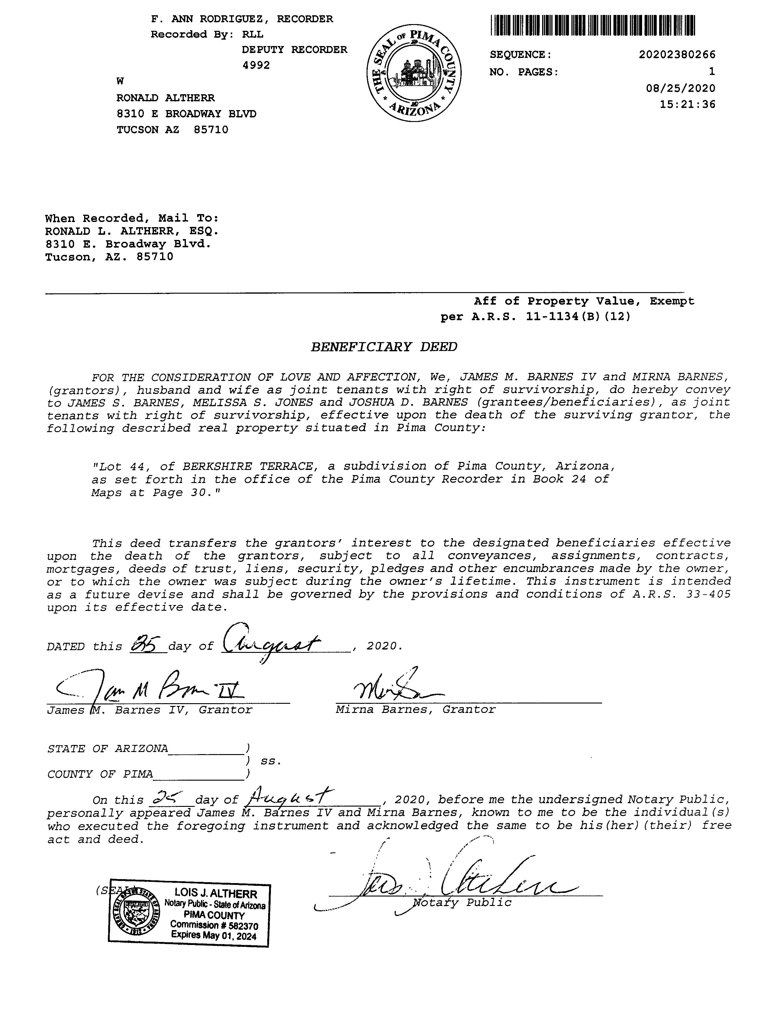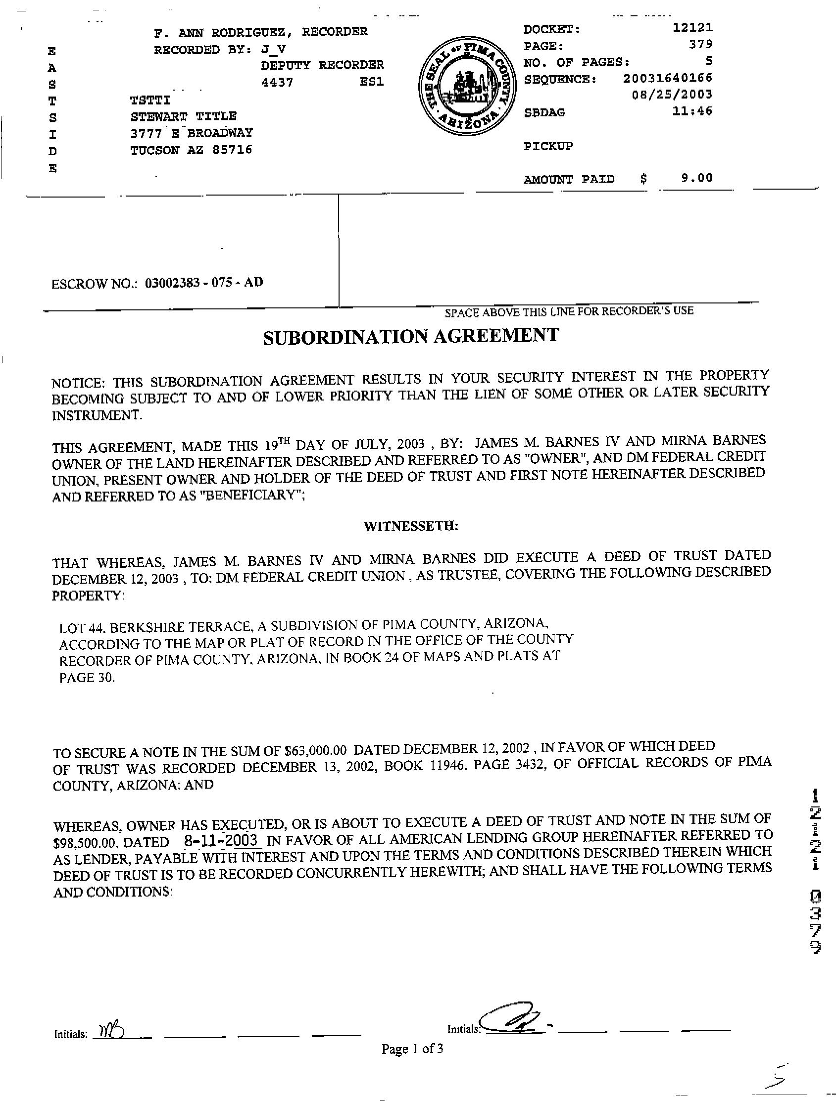 Owner Name: Barnes James M Iv /Barnes Mirna