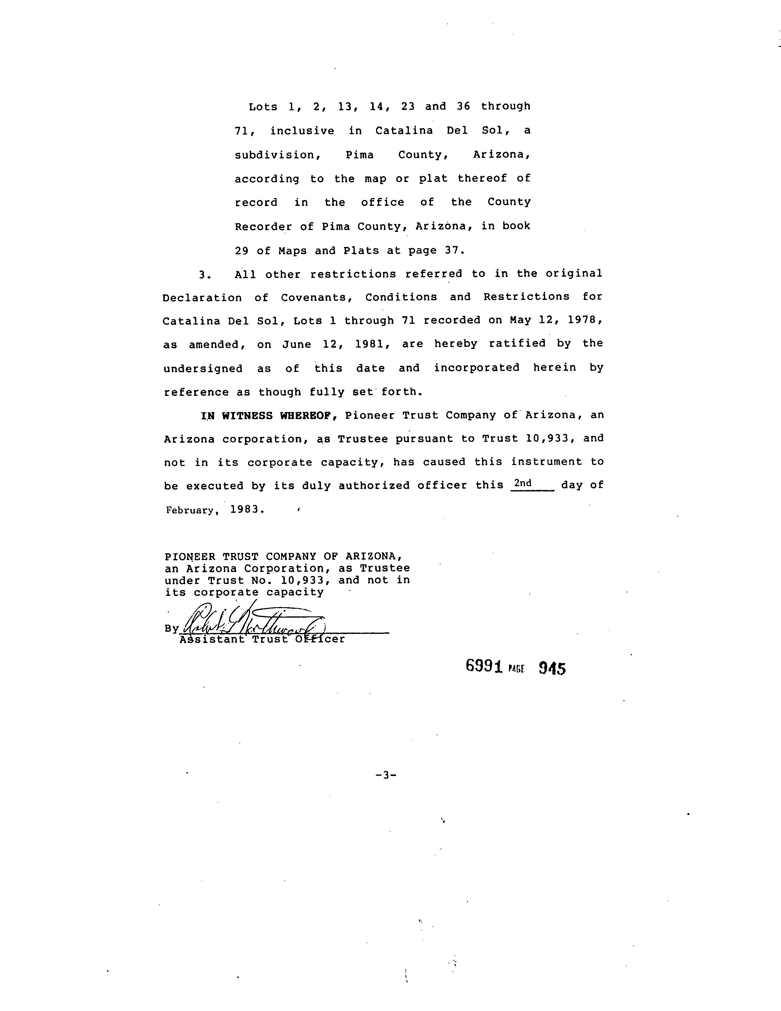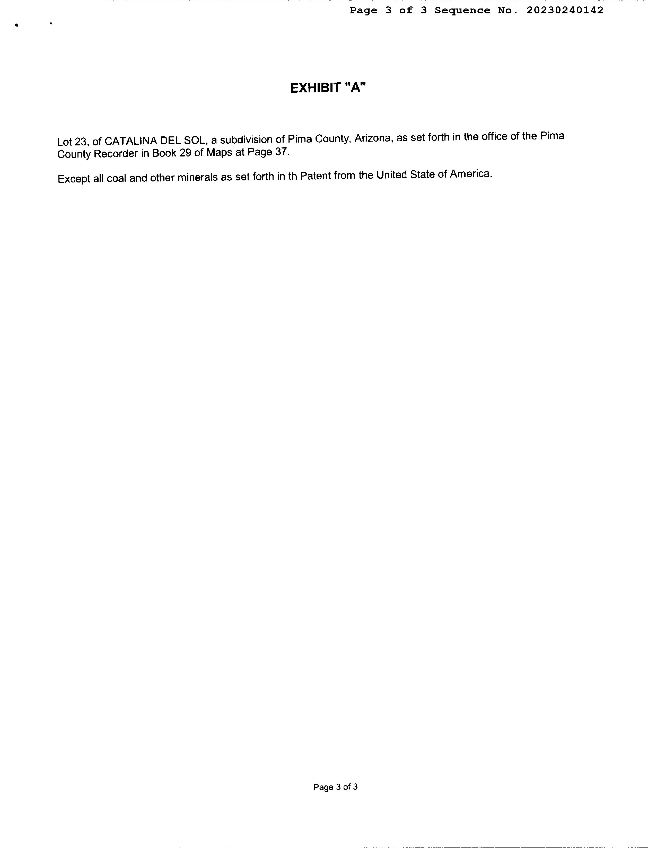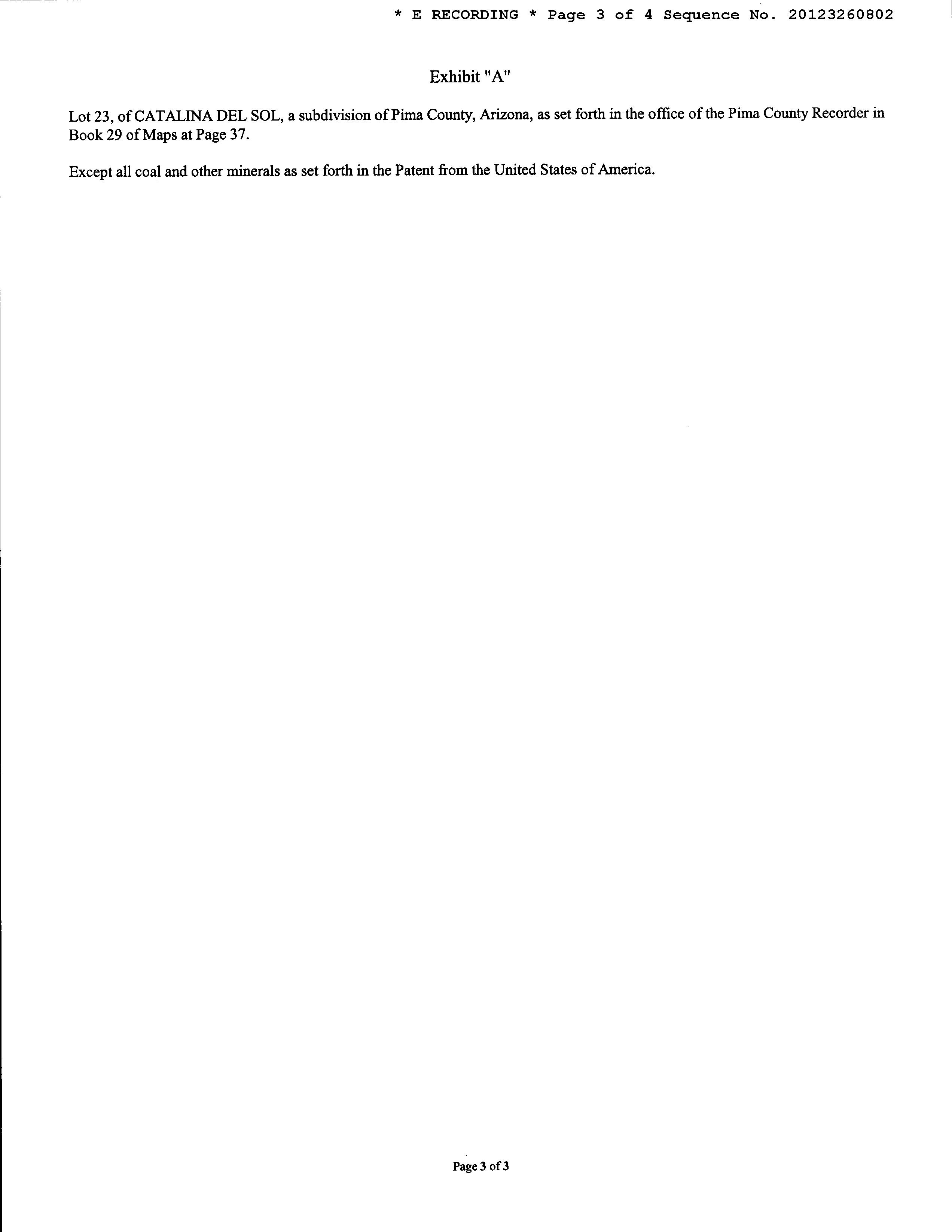 Legal Description : Catalina Del Sol Lot 23