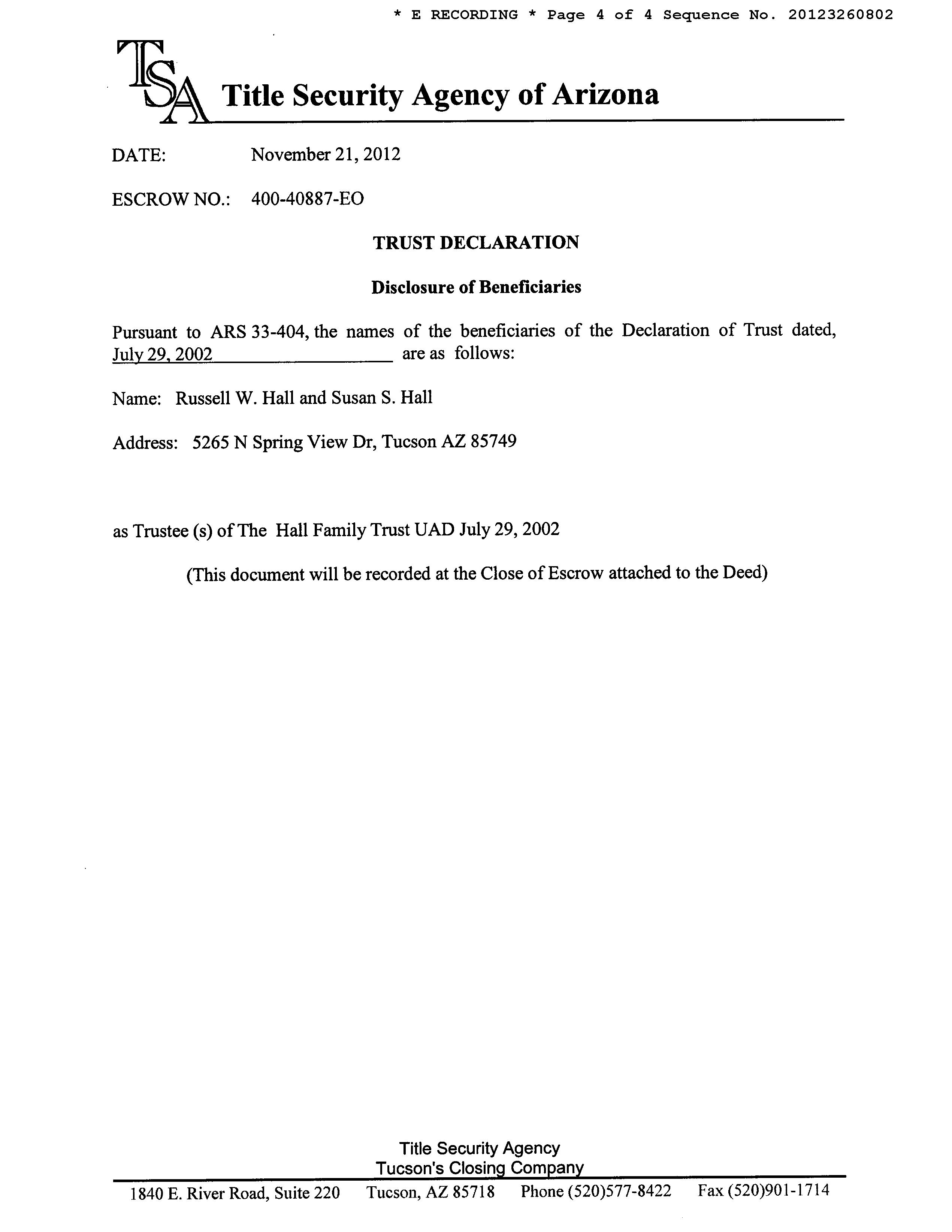 Seller Name : Hallc Family Trust