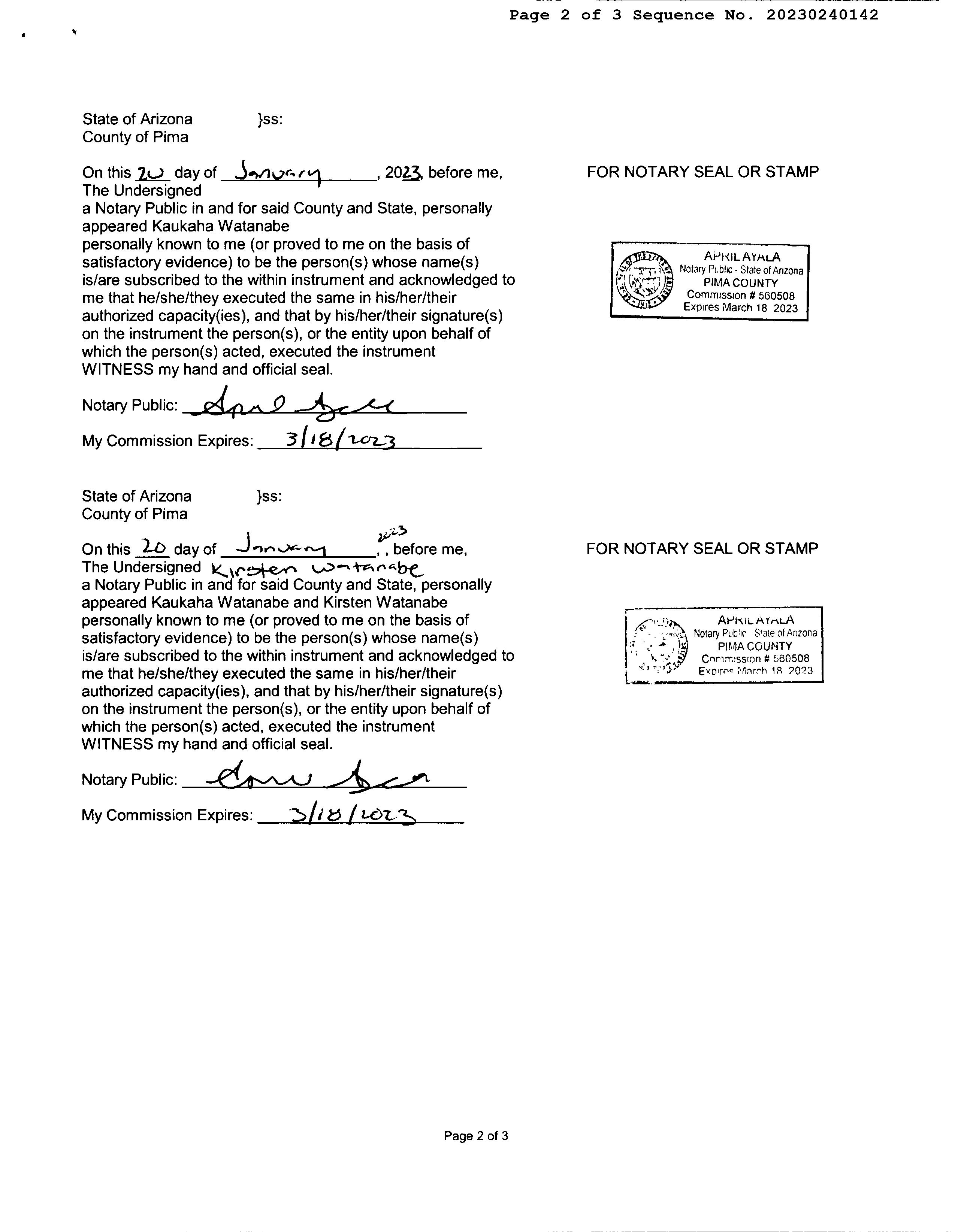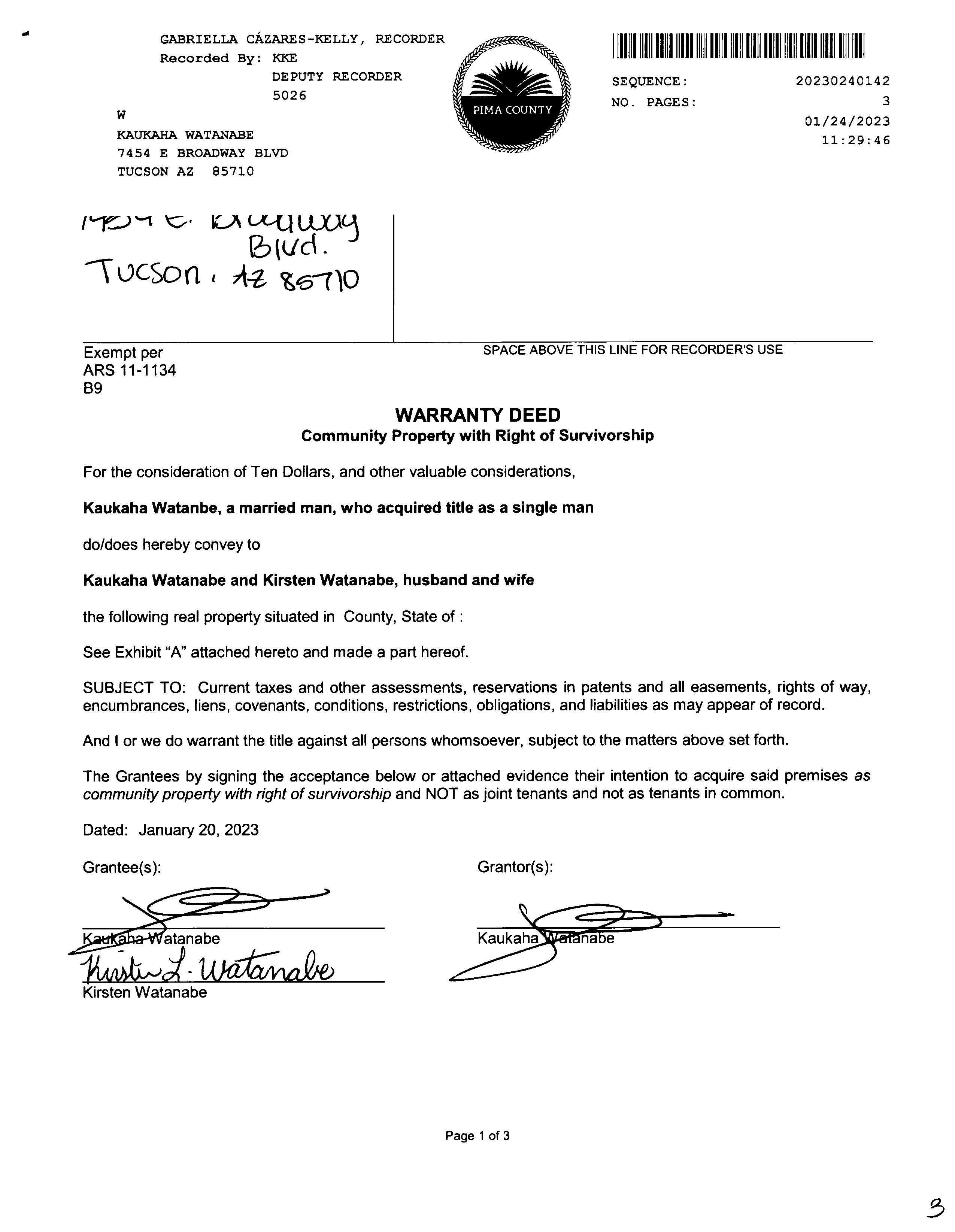 Owner Name: Watanabe Kaukaha /Watanabe Kirsten