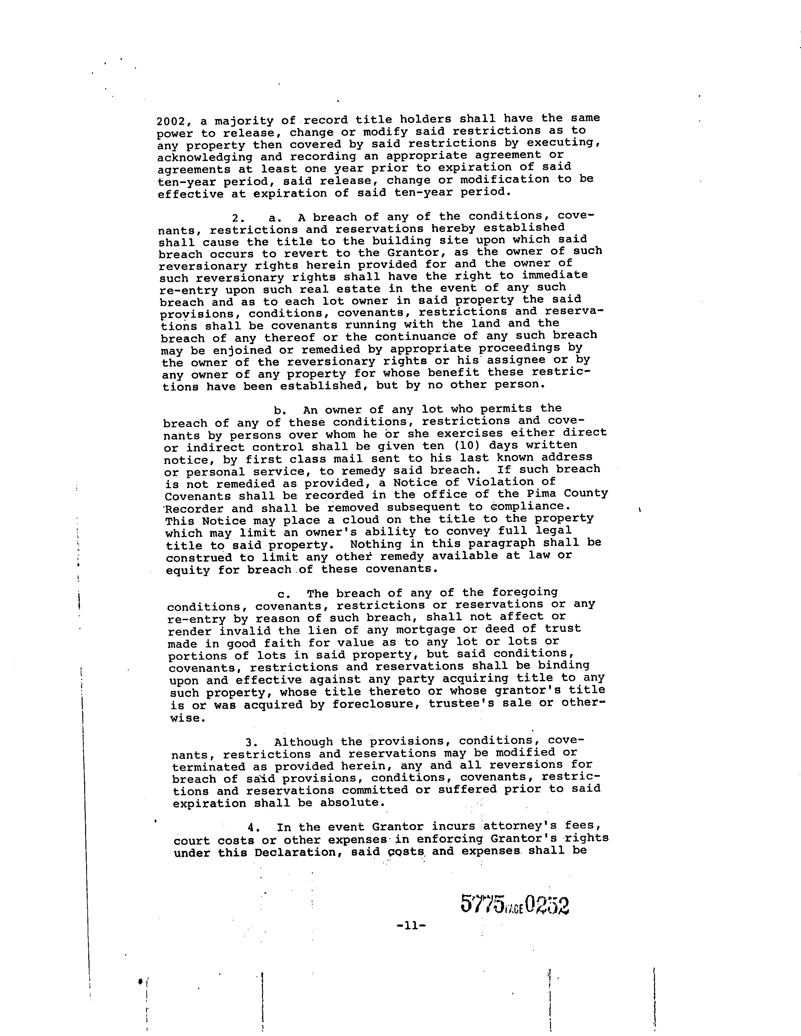 22 Covenant violation resulting in your title reverting to a previous owner