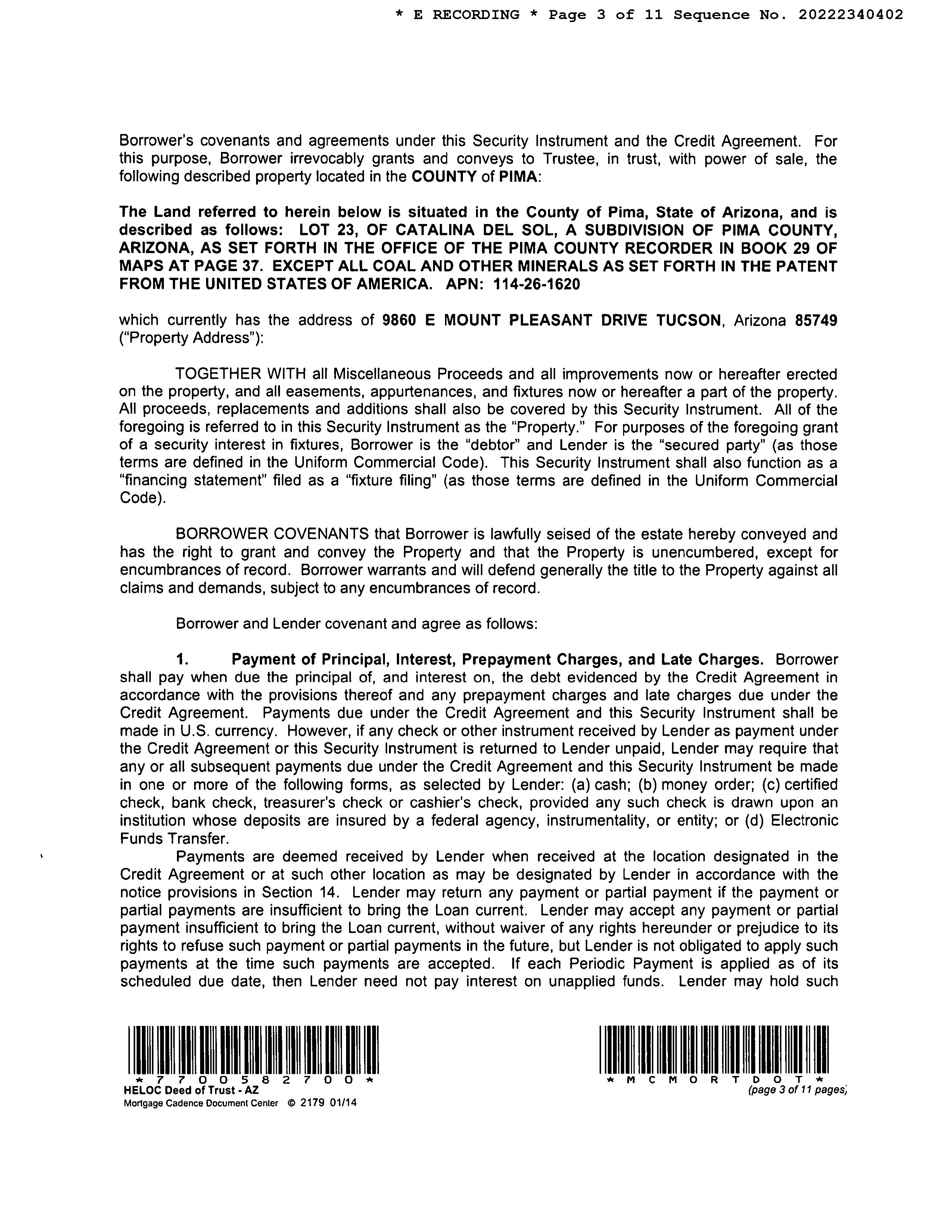 Subject Property : 9860 E Mount Pleasant Dr Tucson AZ 85749