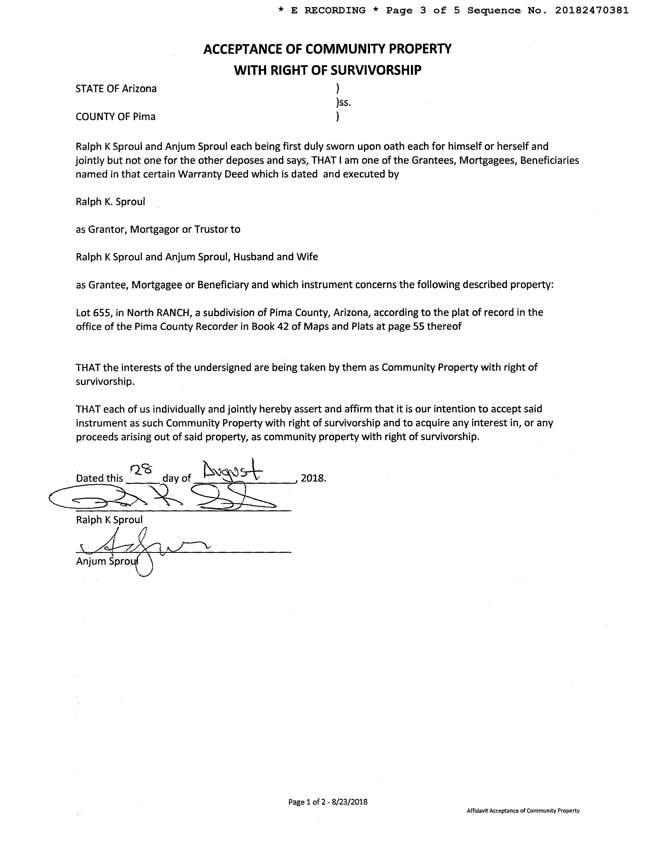Vesting Codes : / / Community Property