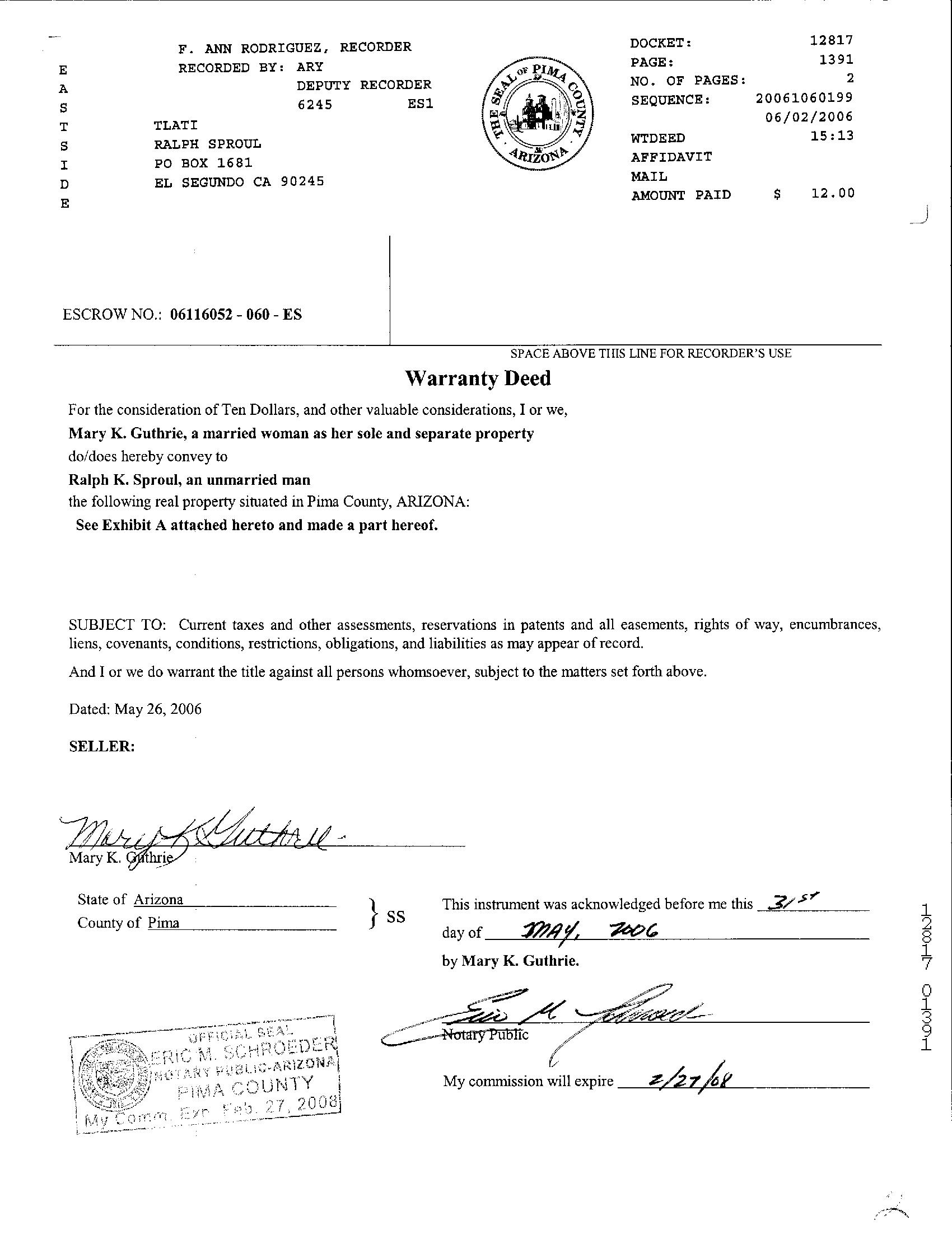 Prior Rec/Sale Date : 06/02/2006 / 05/26/2006