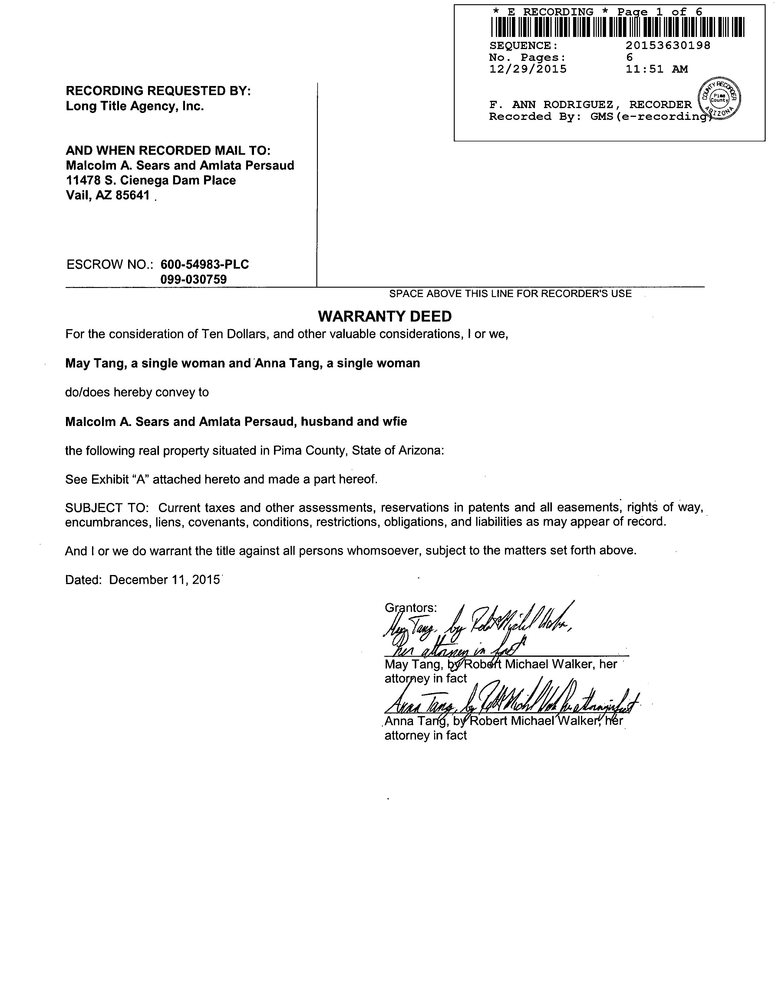 Recording/Sale Date : 12/29/2015 / 12/11/2015