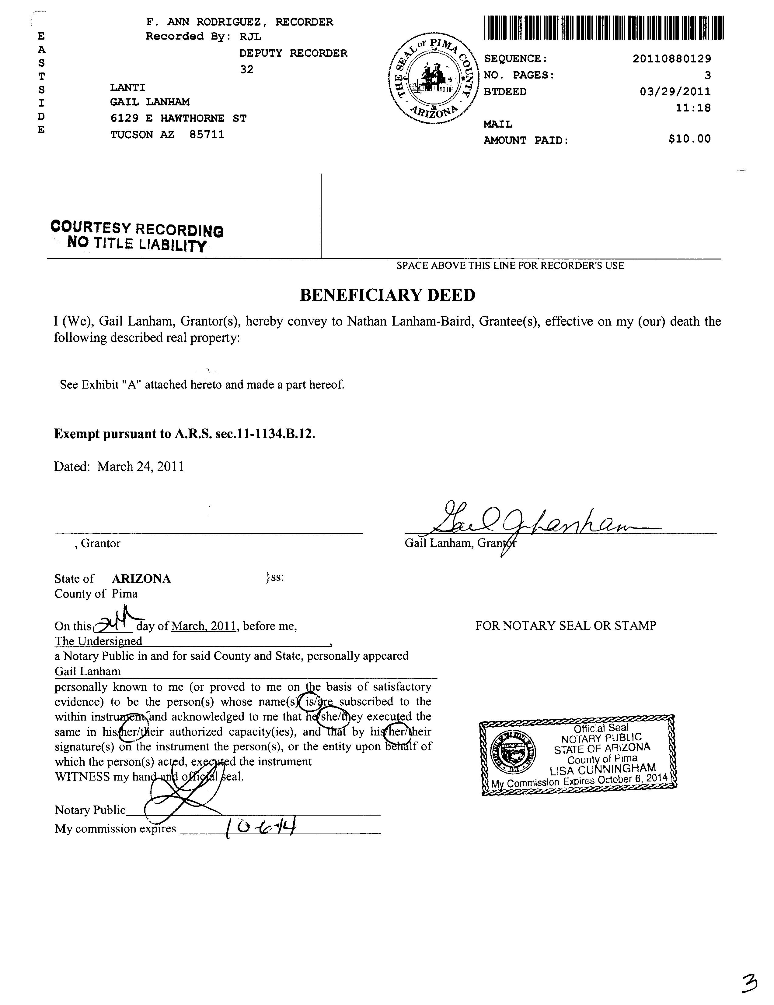 Mailing Address : 6129 E Hawthorne St, Tucson AZ 85711-1626 C022