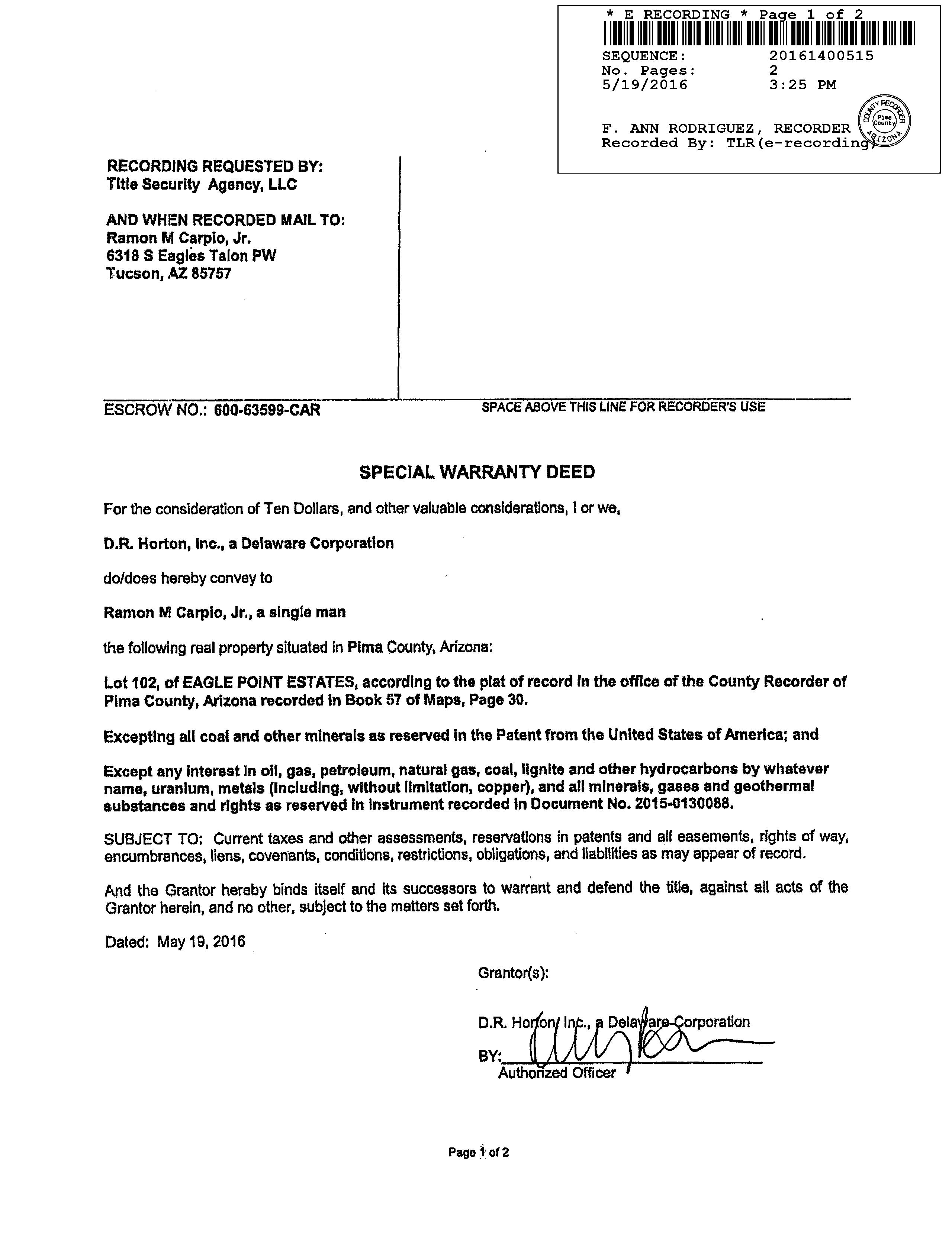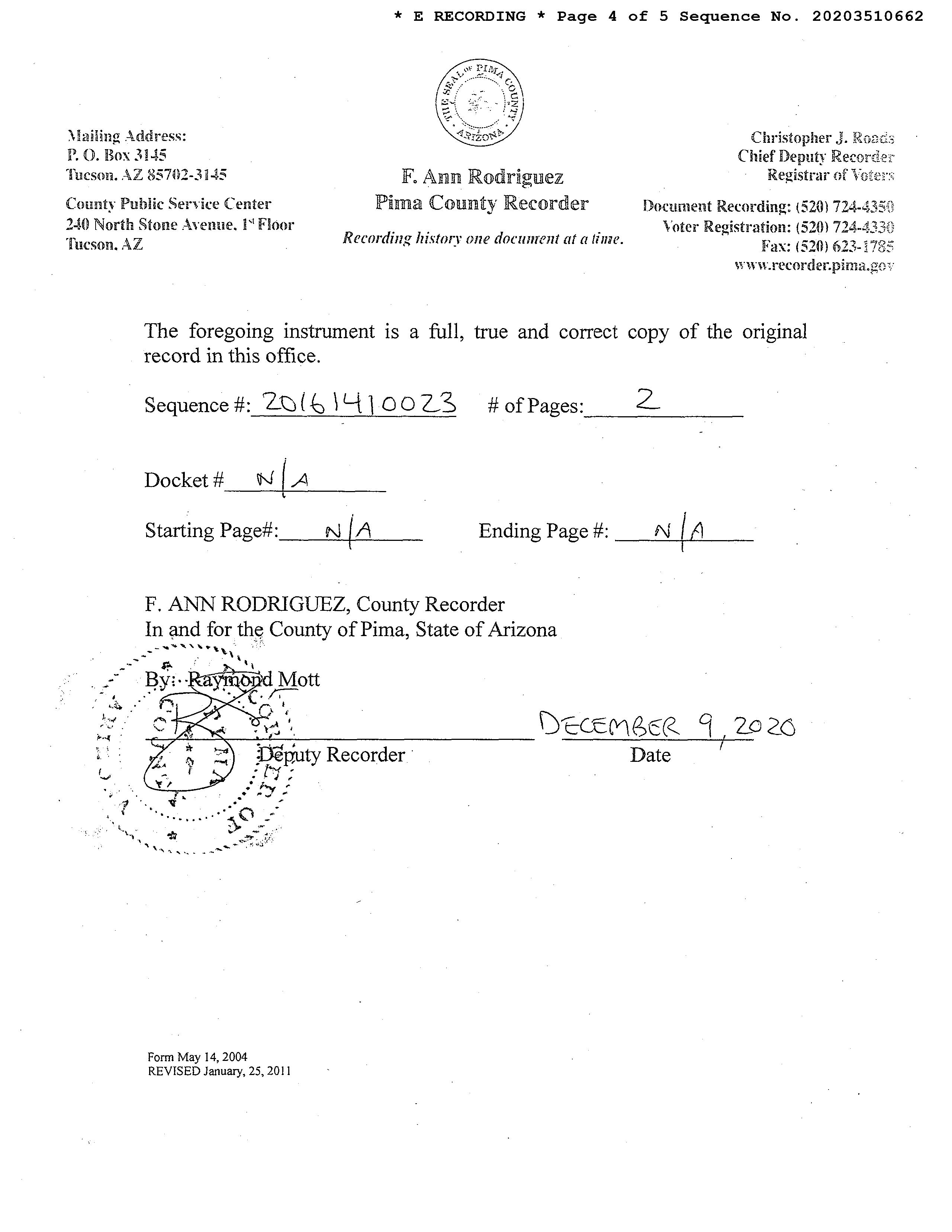 Mailing Address : 6318 S Eagles Talon Pkwy, Tucson AZ 85757-1658 R089