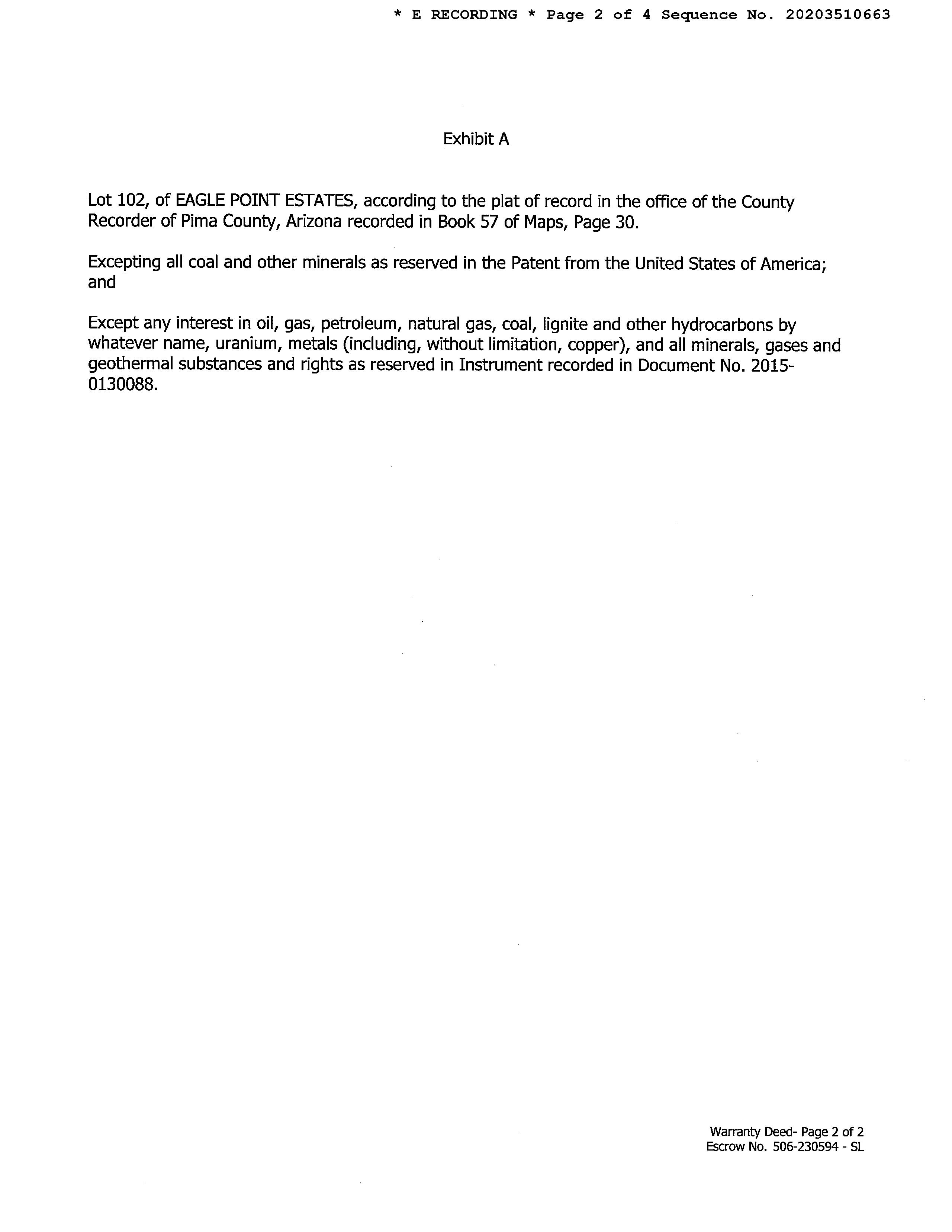 7665 W Tenderfoot Dr Tucson Az 85757 Owner Name: Gonzales Eric /Rodriguez Roxanne P APN / Alternate APN: 210-15-1930 / Deed Type: Warranty Deed Land Use: Sfr Subdivision / Tract: Tucson Mountain Ranch / Lot Size: 7,402 Year Built / Eff: 2006 / Rec. Date / Price: 04/14/2023 / $321,000 Living Area: 1,912 # of units: Document #: 1040902 Bedrooms: Pool: Total Tax Value: $165,005 Bath(F/H): / #7 7729 W Long Boat Way Tucson Az 85757 Owner Name: Mortray Christian A R / APN / Alternate APN: 210-36-2120 / Deed Type: Warranty Deed Land Use: Sfr Subdivision / Tract: Vahalla Estates / Lot Size: 5,895 Year Built / Eff: 2018 / Rec. Date / Price: 12/19/2022 / $280,000 Living Area: 2,367 # of units: Document #: 3530541 Bedrooms: Pool: Total Tax Value: $208,993 Bath(F/H): /