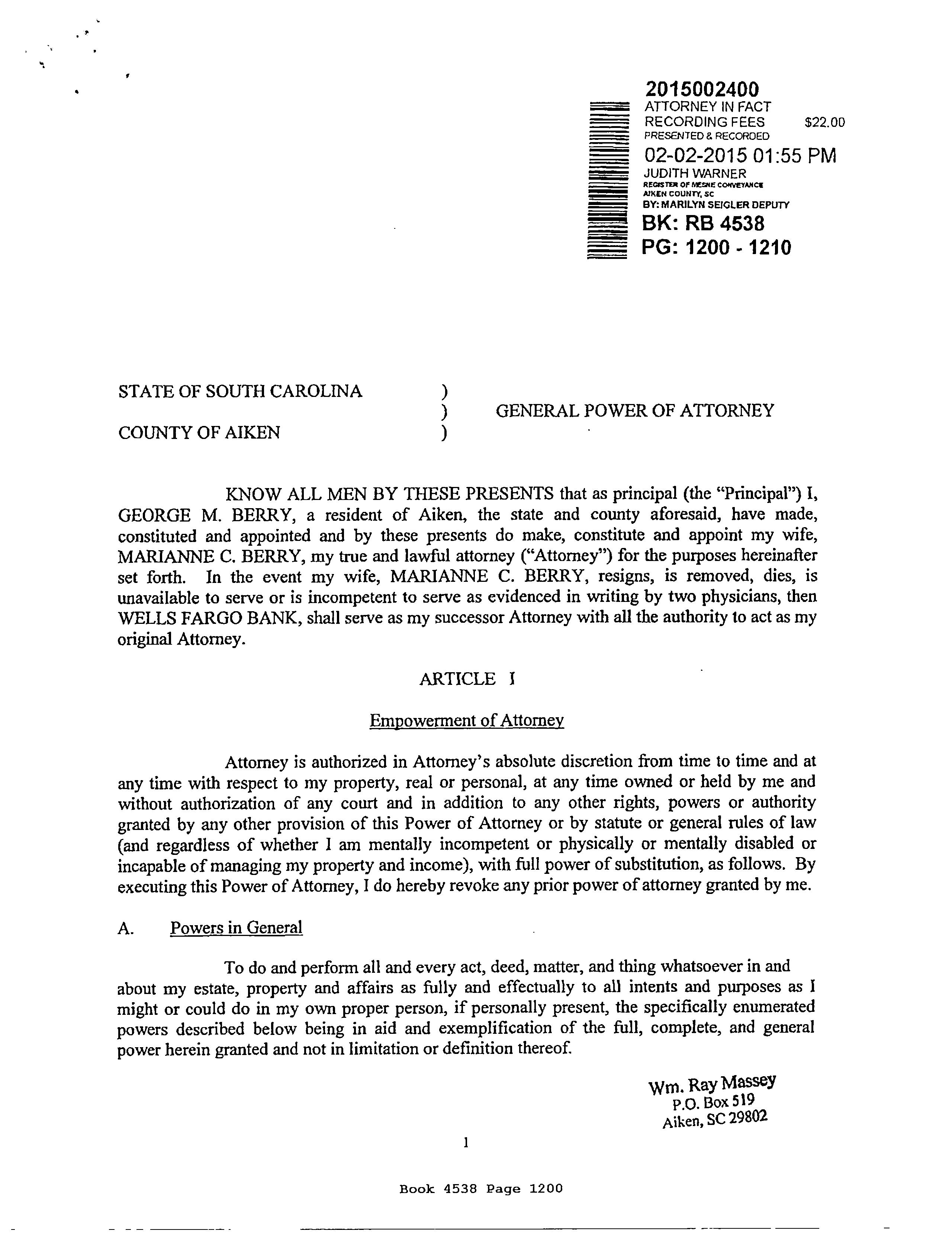 OWNER: BERRY GEORGE M & MARIANNE C