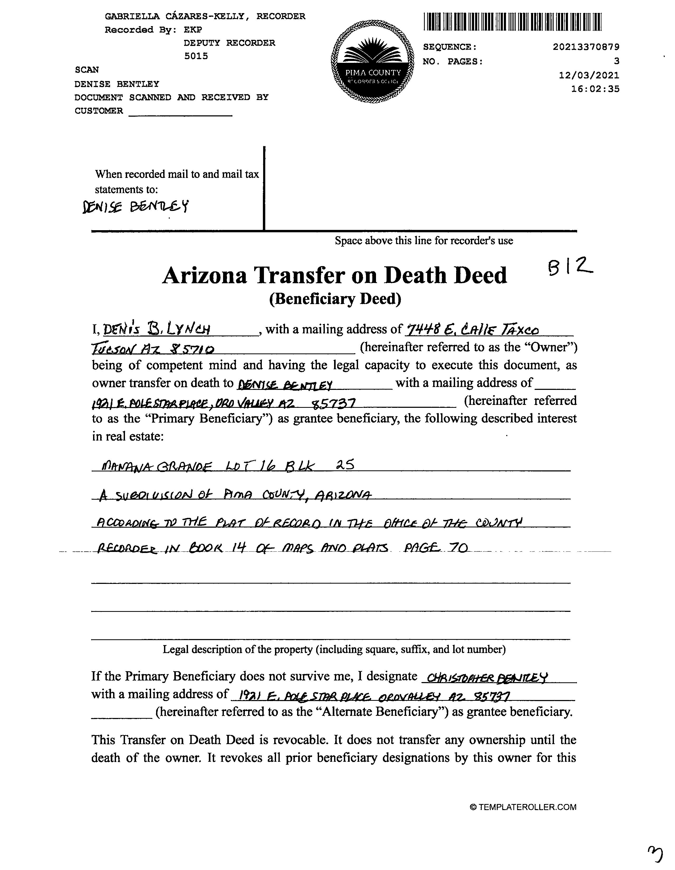 Owner Name : Babicke William Subdivision : Manana Grande