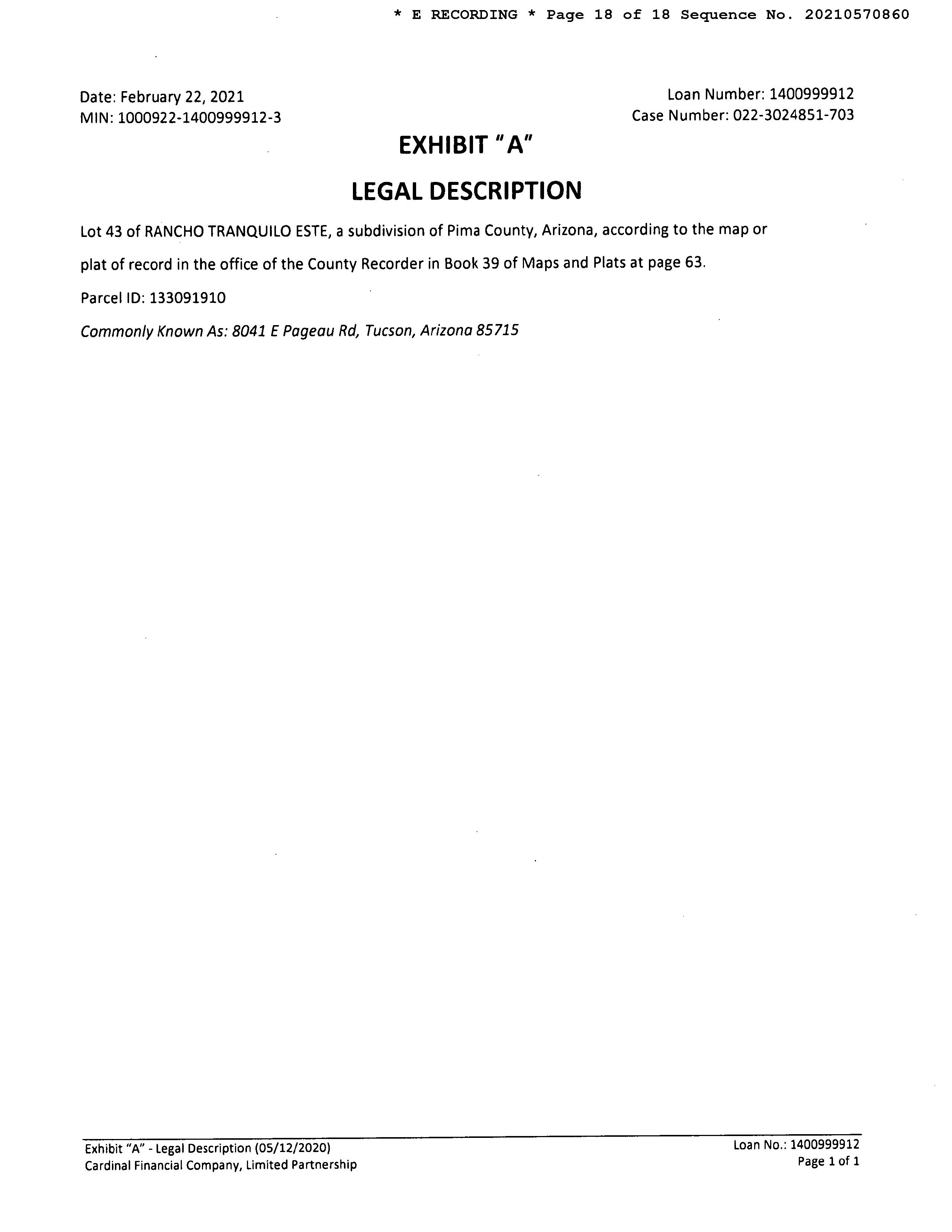 Subject Property : 8041 E Pageau Rd Tucson AZ 85715