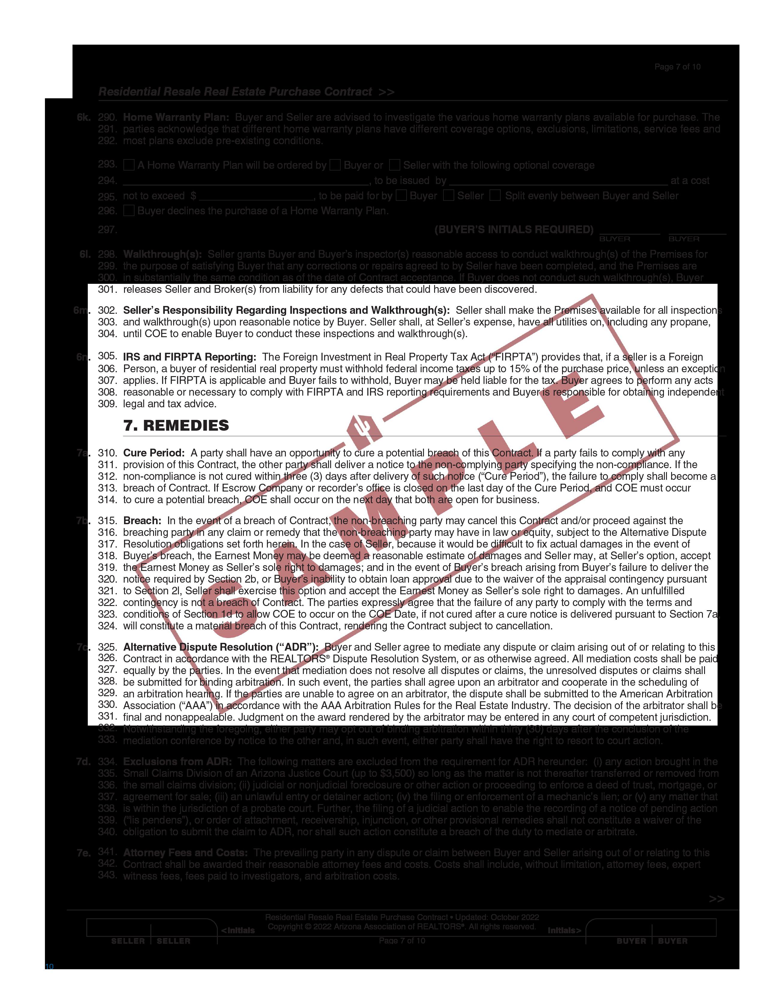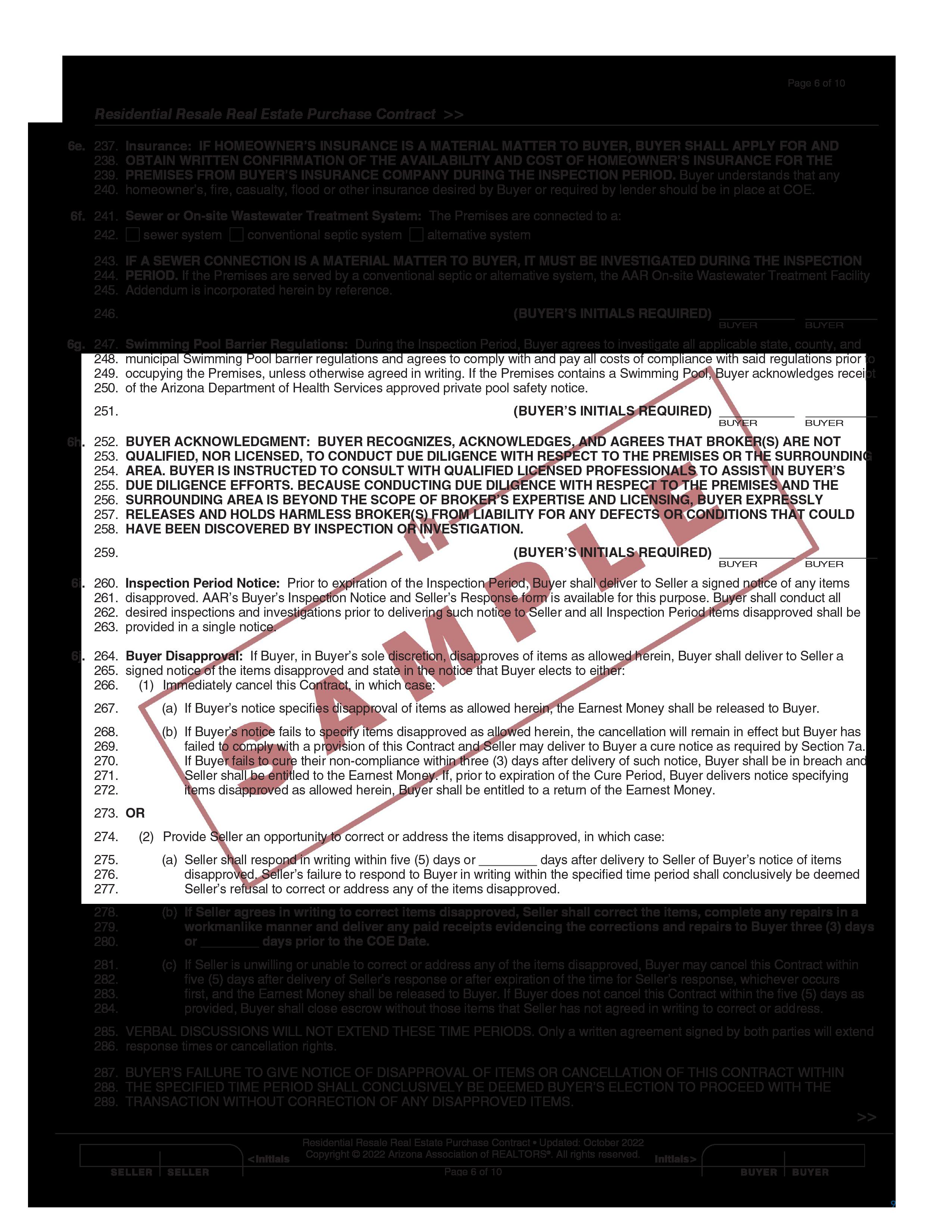 The parties must, upon careful deliberation, decide how much risk they are willing to assume in a transaction. Any waiver of contingencies, rights or warranties in the Contract may have adverse consequences. Buyer and Seller acknowledge that they understand these risks.