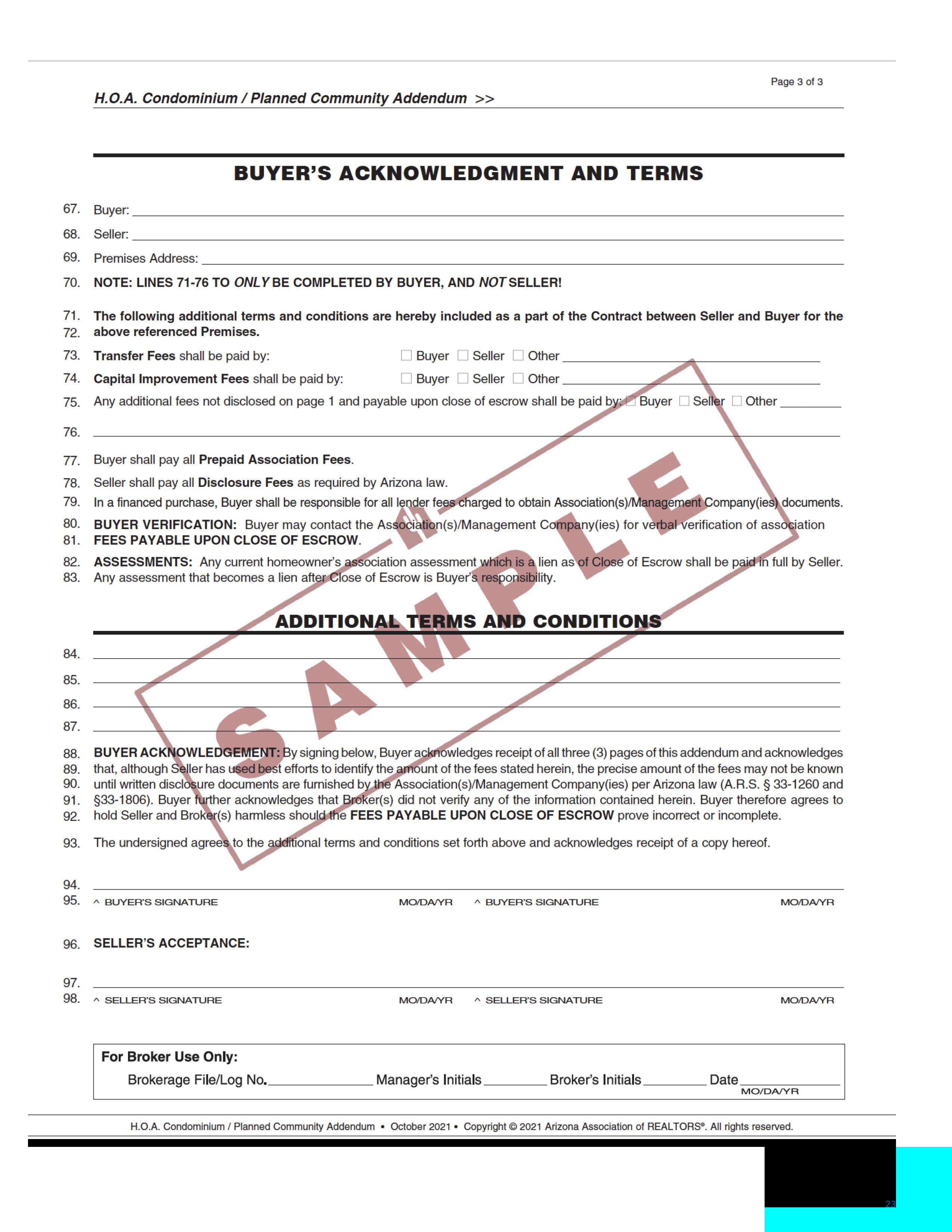 Market Conditions Advisory • Updated: February 2021 Copyright © 2021 Arizona Association of REALTORS®. All rights reserved. Document updated: February 2021 MARKET CONDITIONS ADVISORY SIGNATURE MO/DA/YR NAME SIGNATURE MO/DA/YR NAME