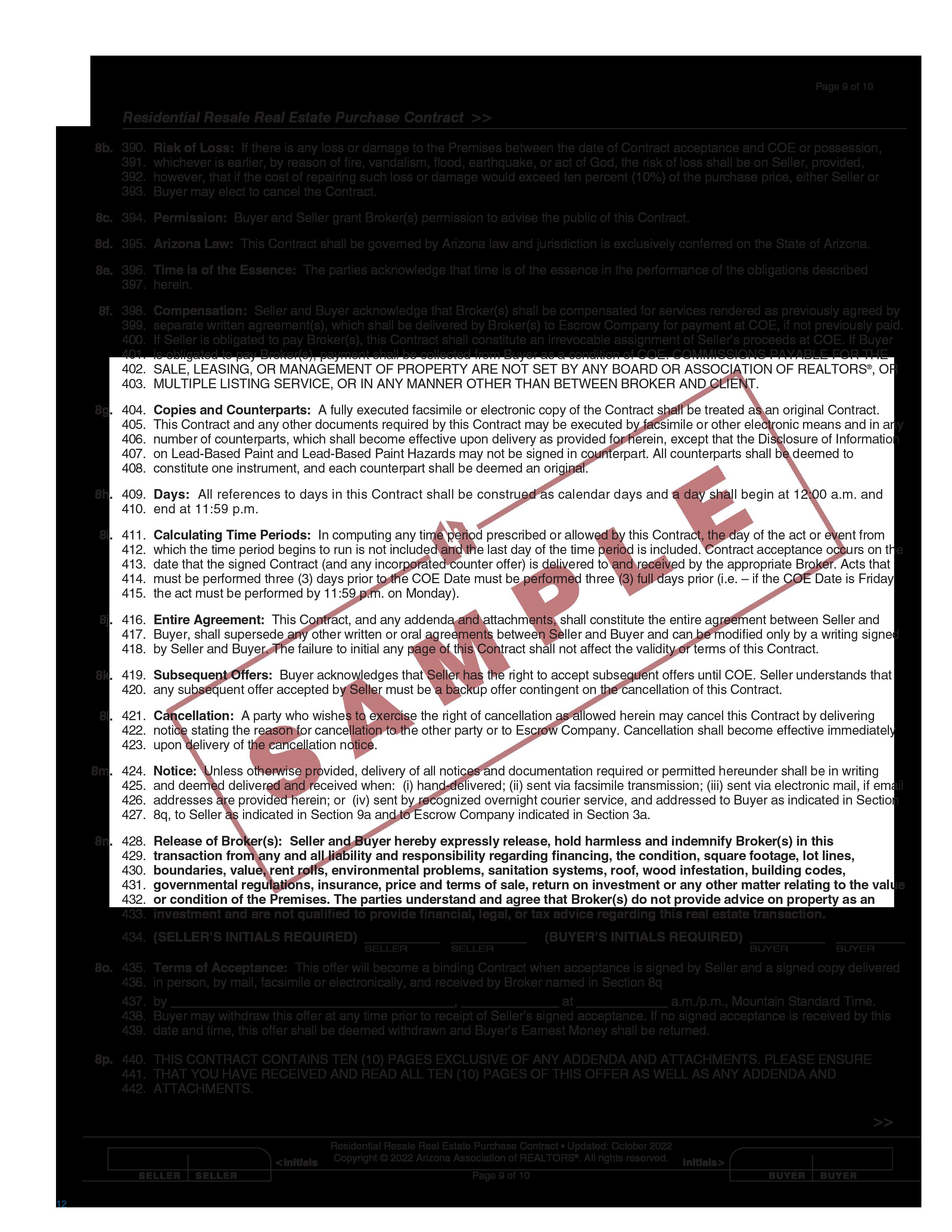 Buyer and Seller assume all responsibility should the return on investment, tax consequences, credit effects, or financing terms not meet their expectations. The parties understand and agree that the Broker(s) do not provide advice on property as an investment. Broker(s) are not qualified to provide financial, legal, or tax advice regarding a real estate transaction. Therefore, Broker(s) make no representation regarding the above items. Buyer and Seller are advised to obtain professional tax and legal advice regarding the advisability of entering into this transaction.
