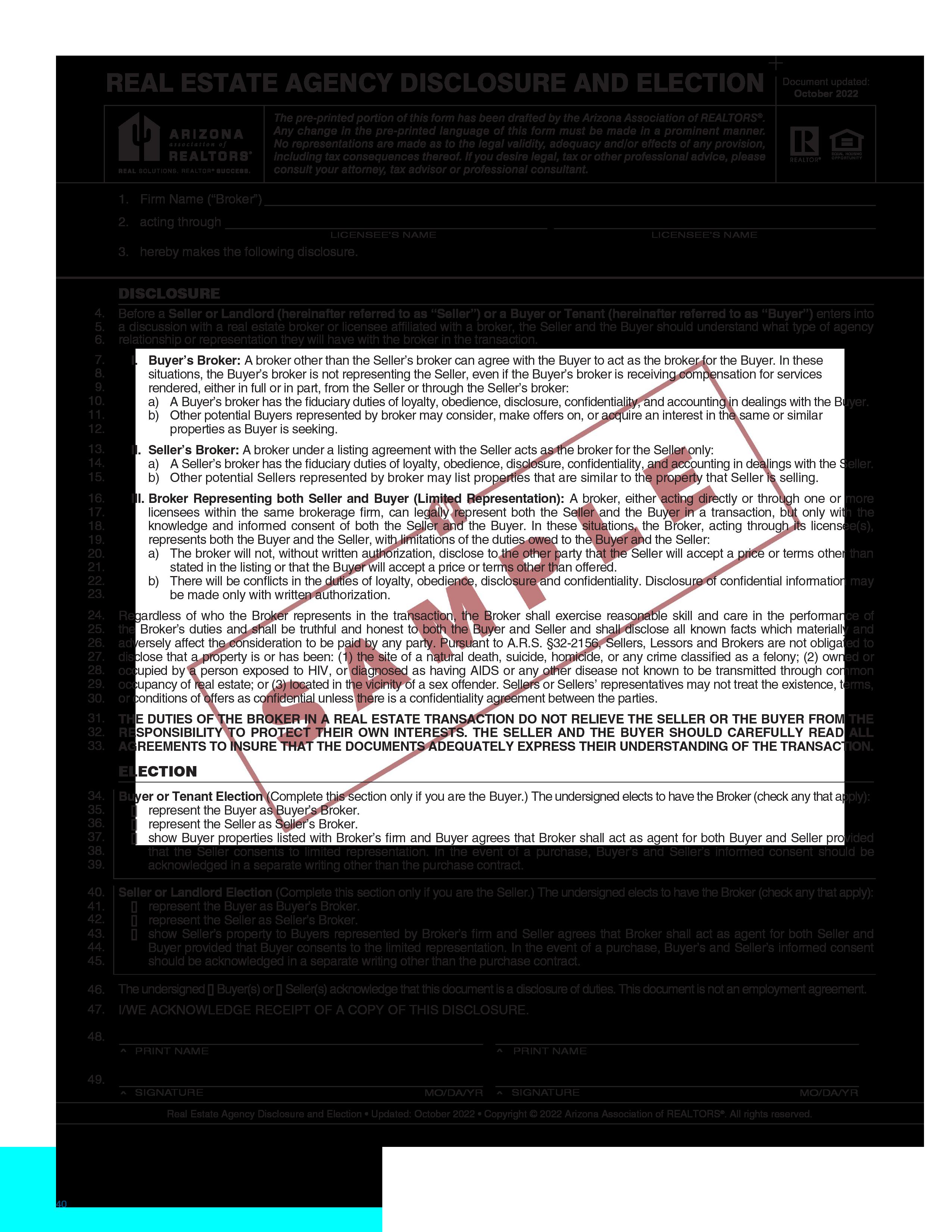 n show Buyer properties listed with Broker’s firm and Buyer agrees that Broker shall act as agent for both Buyer and Seller provided that the Seller consents to limited representation. In the event of a purchase, Buyer’s and Seller’s informed consent should be acknowledged in a separate writing other than the purchase contract.