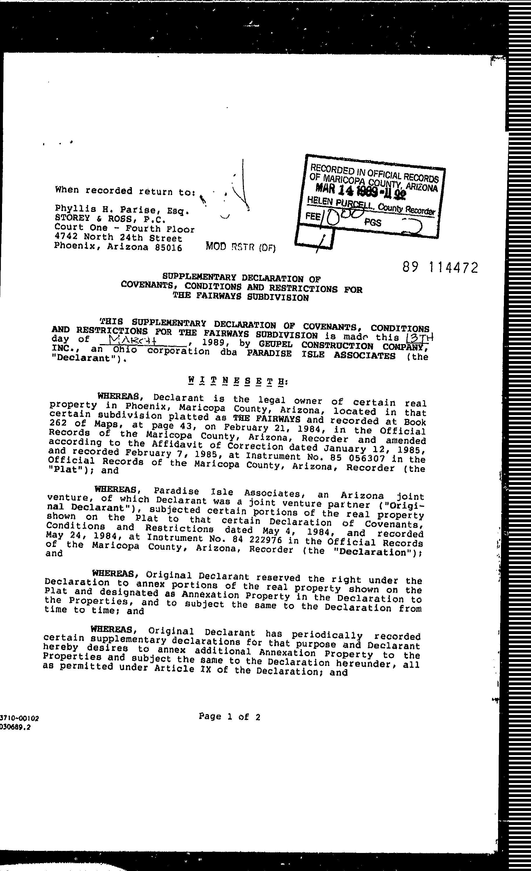 COVENANTS, CONDITIONS & RESTRICTIONS