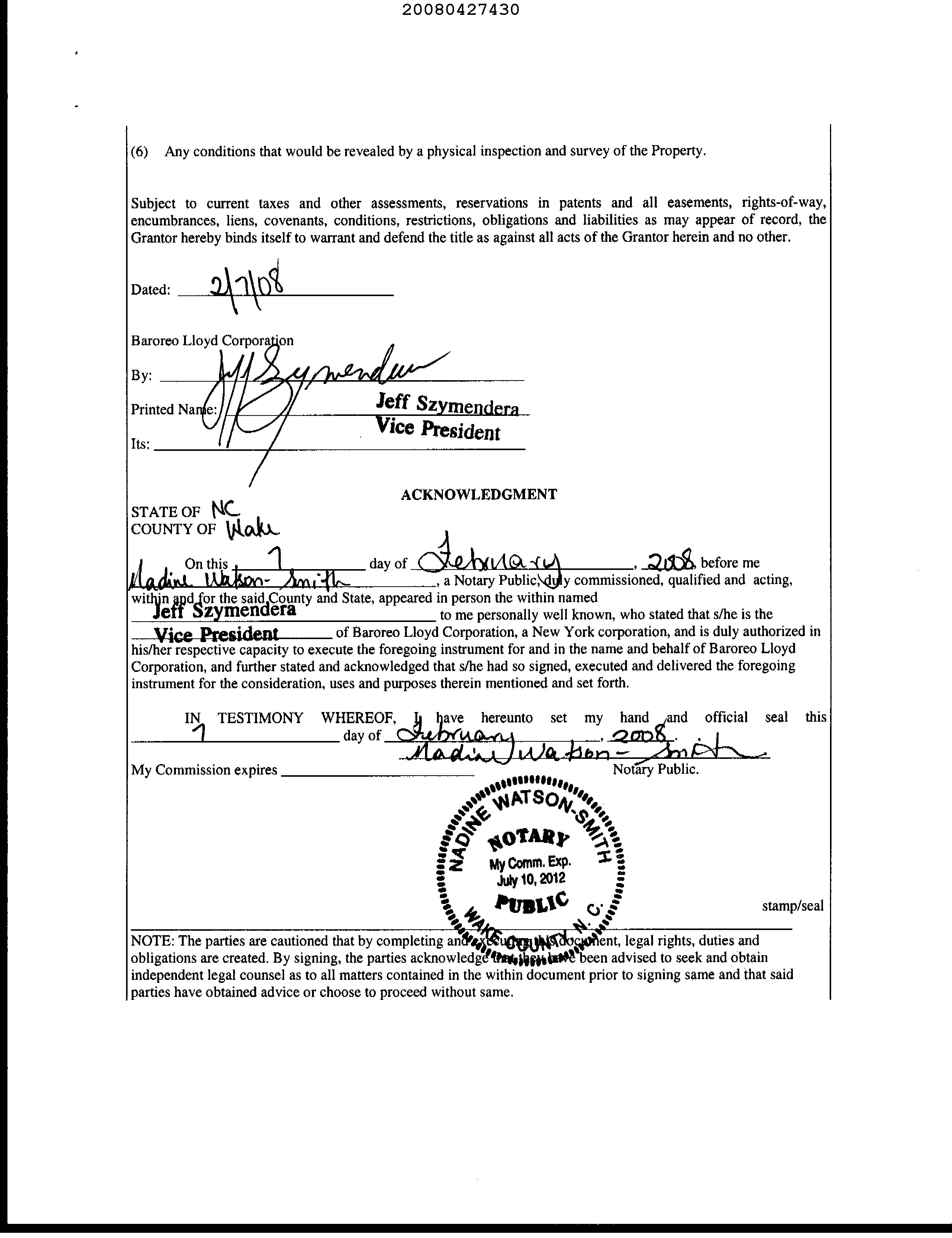 MARICOPA, AZ Document:DED SWR 2008.427430 Page:2 of 2 Printed on:8/16/2023 12:56 PM Branch :FC0 User :JSTI