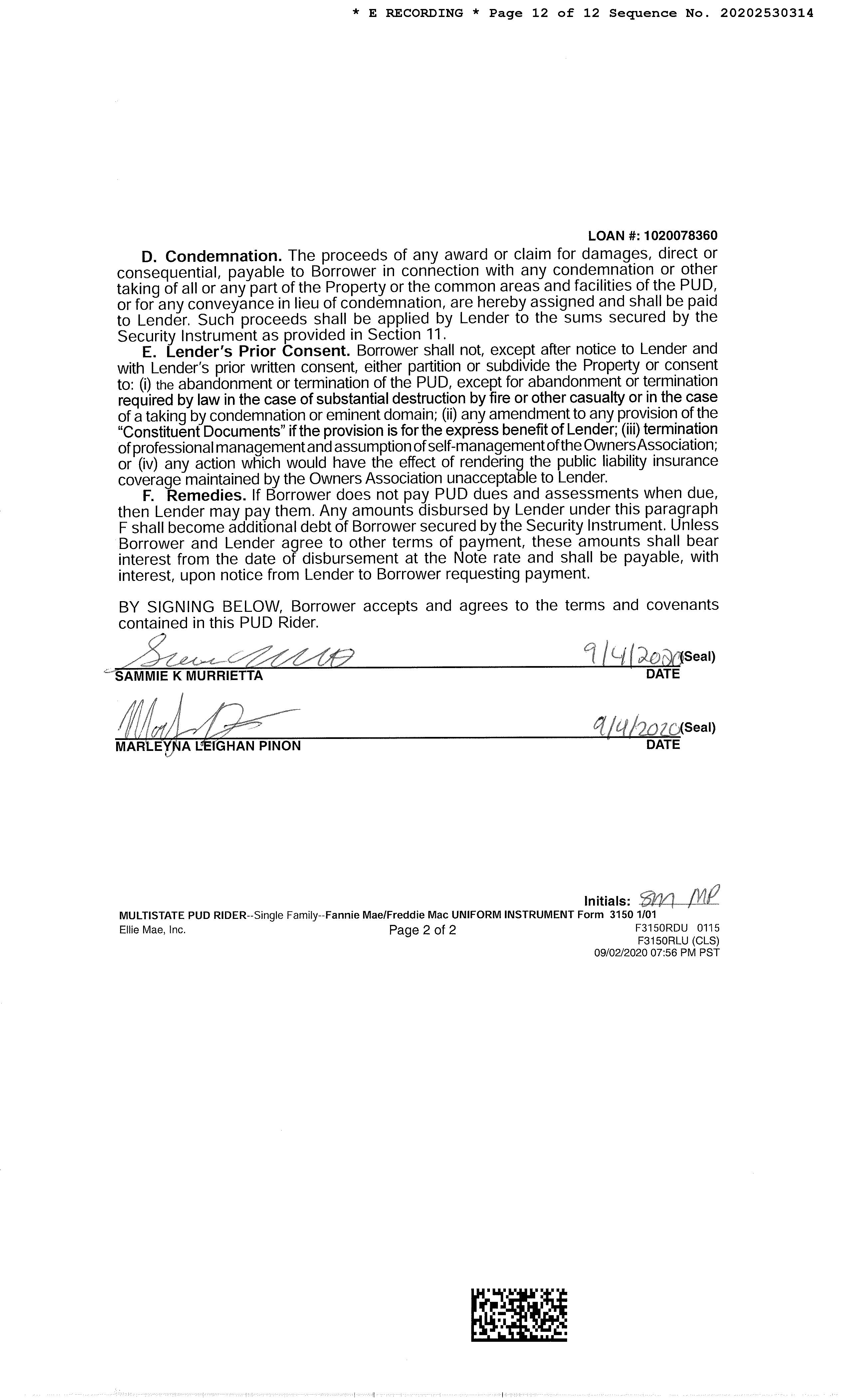 Recording/Sale Date : 09/09/2020 / 09/03/2020 1st Mtg Amount/Type : $270,750 / Cnv