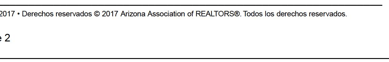 La parte preimpresa de esta forma fue redactada por la Arizona Association of Realtors®. Cualquier cambio en el texto preimpreso de esta forma debe destacarse de manera notable. No se hace ninguna representación en cuanto a la validez legal, idoneidad o efectos de cualquier disposición, incluyendo sus consecuencias fiscales. Si desea asesoría legal, fiscal o profesional, consulte a su abogado, asesor fiscal o consultor profesional