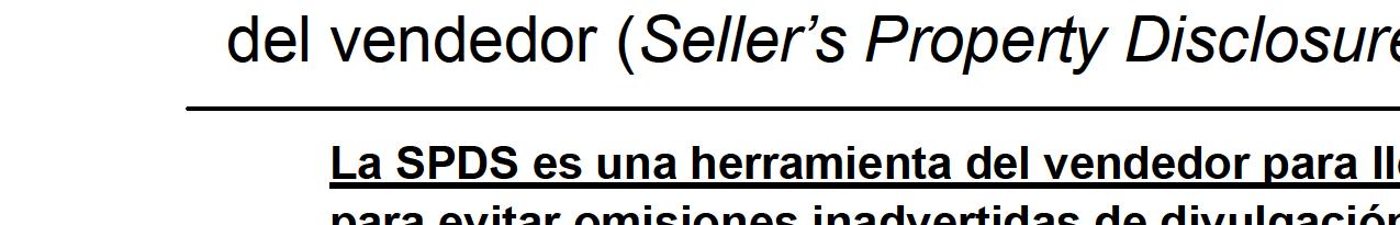 27 NOTIFICACIÓN DE LA DIVULGACIÓN DEL VENDEDOR DE PROPIEDAD [POR SUS SIGLAS EN INGLÉS SPDS]
