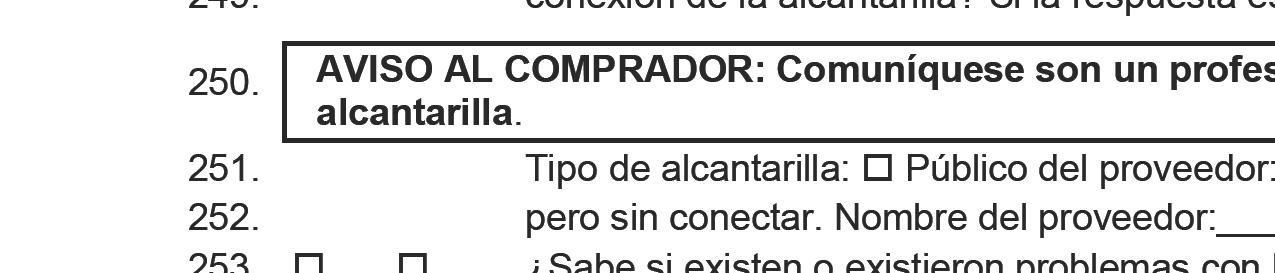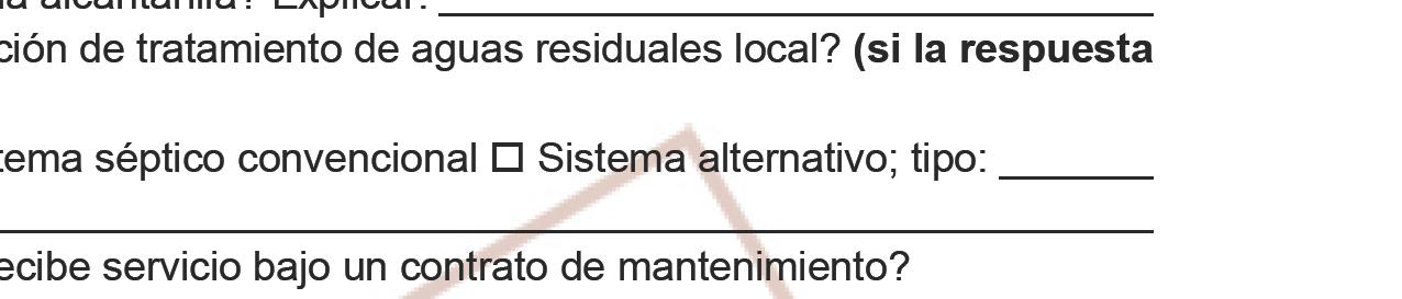 Verifique que la propiedad esté conectada a drenaje o tanque séptico (ver la Sección 6f)