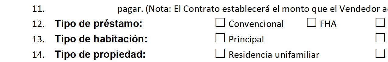 2h. 97 Tipo de financiamiento: Convencional FHA VA USDA Presunción Traslado del Vendedor 98. (si el financiamiento es diferente al nuevo financiamiento, ver el anexo adjunto)