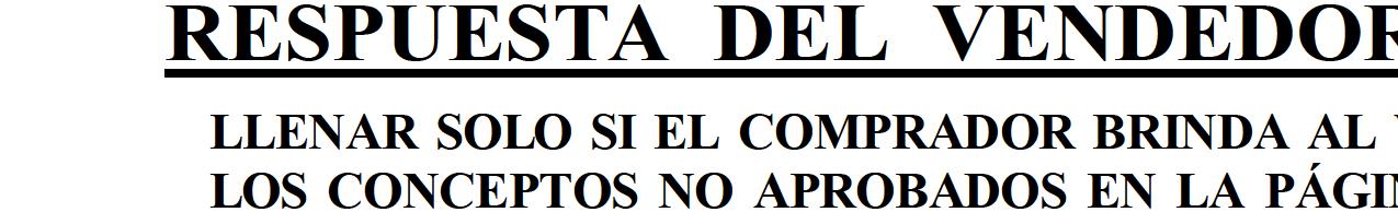 COMPRADOR COMPRADOR VENDEDOR VENDEDOR ANTICIPO NO REEMBOLSABLE: El anticipo del Comprador no será reembolsable a menos que el Comprador opte por cancelar de conformidad con la sección de Debida diligencia del Contrato, el Contrato se cancela de conformidad con la disposición de Riesgo pérdida o si la garantía no se cierra debido a un incumplimiento de contrato por parte del Vendedor. El Comprador acepta que el anticipo del Comprador no es reembolsable incluso si el Inmueble no es evaluado en el precio de venta o no se cumple con la contingencia de préstamo. DEL COMPRADOR Y VENDEDOR REQUERIDAS)