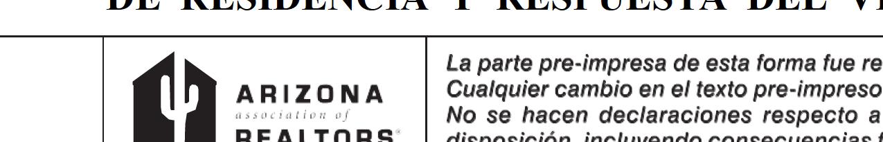 La parte preimpresa de esta forma fue redactada por la Arizona Association of Realtors®. Cualquier cambio en el texto preimpreso de esta forma debe destacarse de manera notable. No se hace ninguna representación en cuanto a la validez legal, idoneidad o efectos de cualquier disposición, incluyendo sus consecuencias fiscales. Si desea asesoría legal, fiscal o profesional, consulte a su abogado, asesor fiscal o consultor profesional