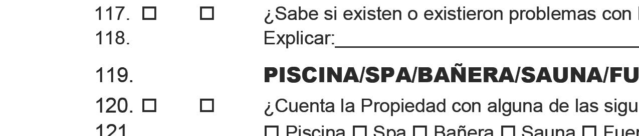 Verifique que la propiedad esté conectada a drenaje o tanque séptico (ver la Sección 6f)