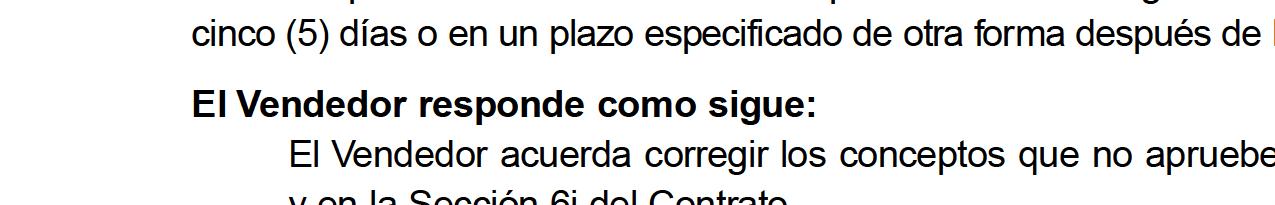41. descrita a continuación al Comprador en un plazo de diez (10) días después de recibir la notificación del Vendedor.