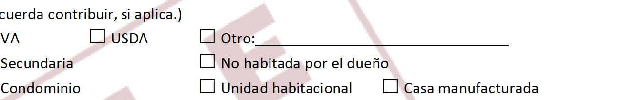 2h. 97 Tipo de financiamiento: Convencional FHA VA USDA Presunción Traslado del Vendedor 98. (si el financiamiento es diferente al nuevo financiamiento, ver el anexo adjunto)