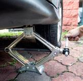 The car’s tool kit will have a jack for lifting the car up. All cars have dedicated jacking points. The driver should look in the handbook to find where they are, then position the jack under the jacking point and use it to raise that corner of the car off the ground by 10 centimetres or so.