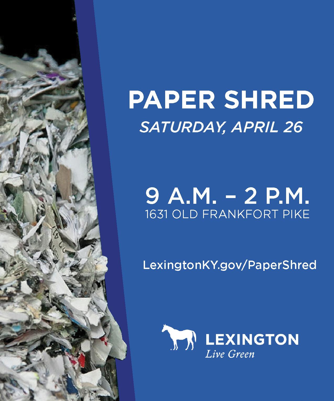 Lexington hosts free paper shred events twice a year, once in the spring and again in the fall. Fayette County residents may bring up to five boxes or bags of material to be shredded at no cost.