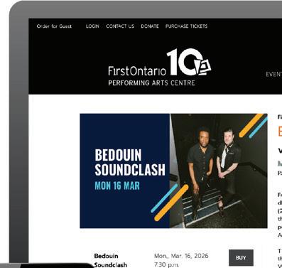 The FirstOntario Performing Arts Centre is located on the shared traditional lands of the Haudenosaunee, Anishinaabe, Mississaugas of the Credit First Nation, the Neutral Peoples and many other Indigenous People from across Turtle Island. We offer our sincere gratitude and respect to the original and continued stewards of this land