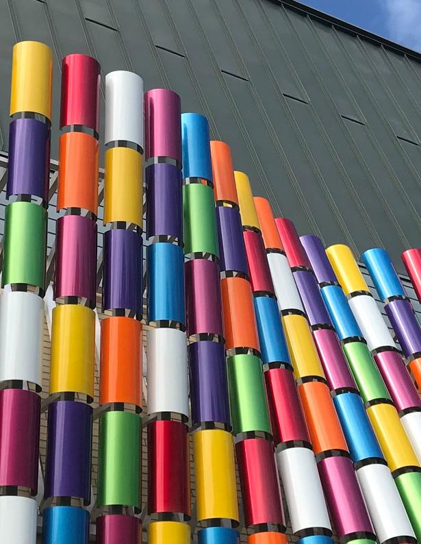 Drawing inspiration from Indigenous Wampum belt, the Curtain Call sculptural installation designed by visual artist Lilly Otasevic adorns the eastern wall of the FirstOntario Performing Arts Centre. With waves mimicking a theatre curtain, the sculpture also represents diversity, present and past as well as our inter-connectedness. The sculpture conveys the multilayered historical as well as contemporary aspects of the FirstOntario Performing Arts Centre site that was a main trade route of the Indigenous people and European settlers.