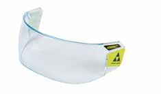 Impact resistant Polycarbonate, Modern pro-aproved design with optically perfect form, optical purity and invi sible edge, Antifog & -scratch coating layers, Compatible with all types of hockey helmets, Box package includes mounting spacers, cleaning emulsion and microfiber cloth, CE certified