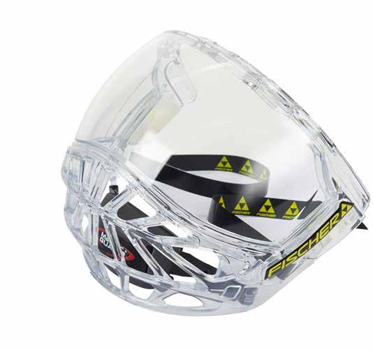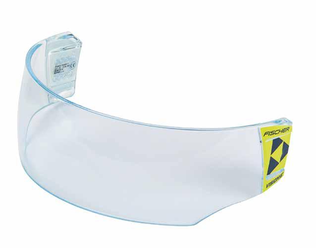 resistant Polycarbonate, Modern pro-aproved design with optically perfect form, optical purity and invisible edge, Antifog & -scratch coating layers, Compatible with all types of hockey helmets, Modern Fischer Logo screw cover, Box package includes mounting spacers, cleaning emulsion and microfiber cloth, CE certified