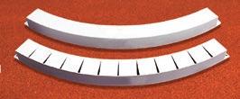 Heavy gauge steel featuring a curved front lip which eliminates it as a pole obstacle even when the runway is worn down. Has flared sides and 105 degree angle.