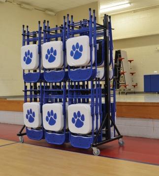 The chair backrest is 1” closedcell foam covered in 30 oz. vinyl. Included in the cost of the chair is a 2 color print of your school name, mascot or logo. Maximum print dimension is 5” high x 13” wide.