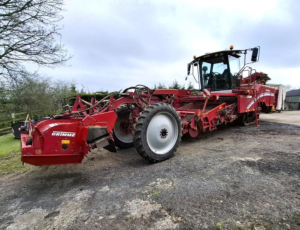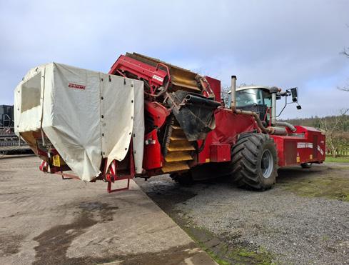 2011 Grimme Varitron 200, registration FX11 BNB, 4,957 hours, 2 row, cart elevator, double multi set, picking off table, unloading elevator, front tyres: Continental 300/95 R42, rear tracks, c/w Grimme Haulm topper, lifted 2,708 acres, on farm from new, serial no. 6510 0235.