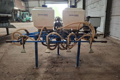 Horstine Farmery Microband granular applicator, 2m width, 4 outlets, 2no. hoppers, 3 point linkage mounted.