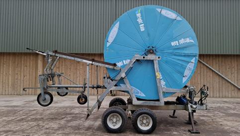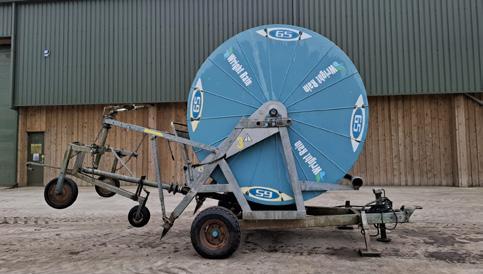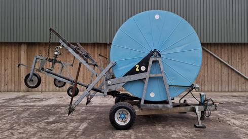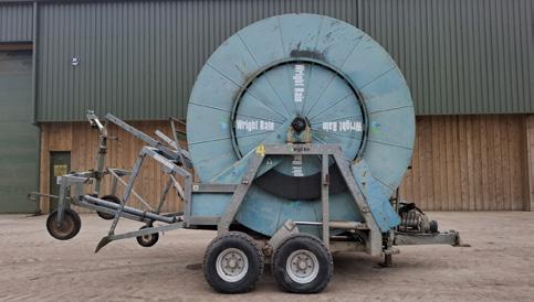 1999 Wright Rain 110 G420 hose reel irrigator, 420m reel, 110mm diameter, irrigation trolley, solar panel charge, onboard computer, c/w galvanised rain gun, serial no. 133991173.