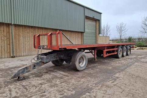 1987 Clouby lorry trailer with dolly, c. 12.2m, tri axle, timber floor, serial no. 87060149005.