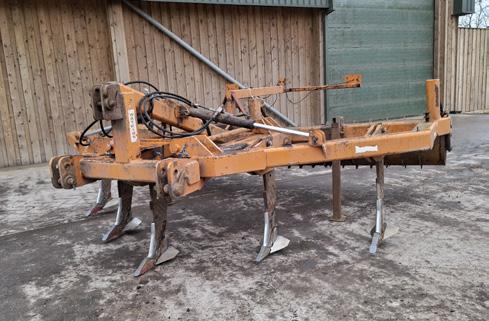 Watkins subsoiler, 4m, 5 legs, rear packer roller, hydraulic folding, mounted.