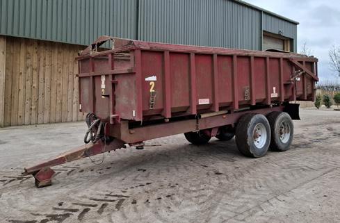 1995 Triffitt root crop trailer, 12t, low sides, air brakes, sprung drawbar, twin axle, hydraulic rear door, manual rollover sheet, inspection steps, serial no. 3621.