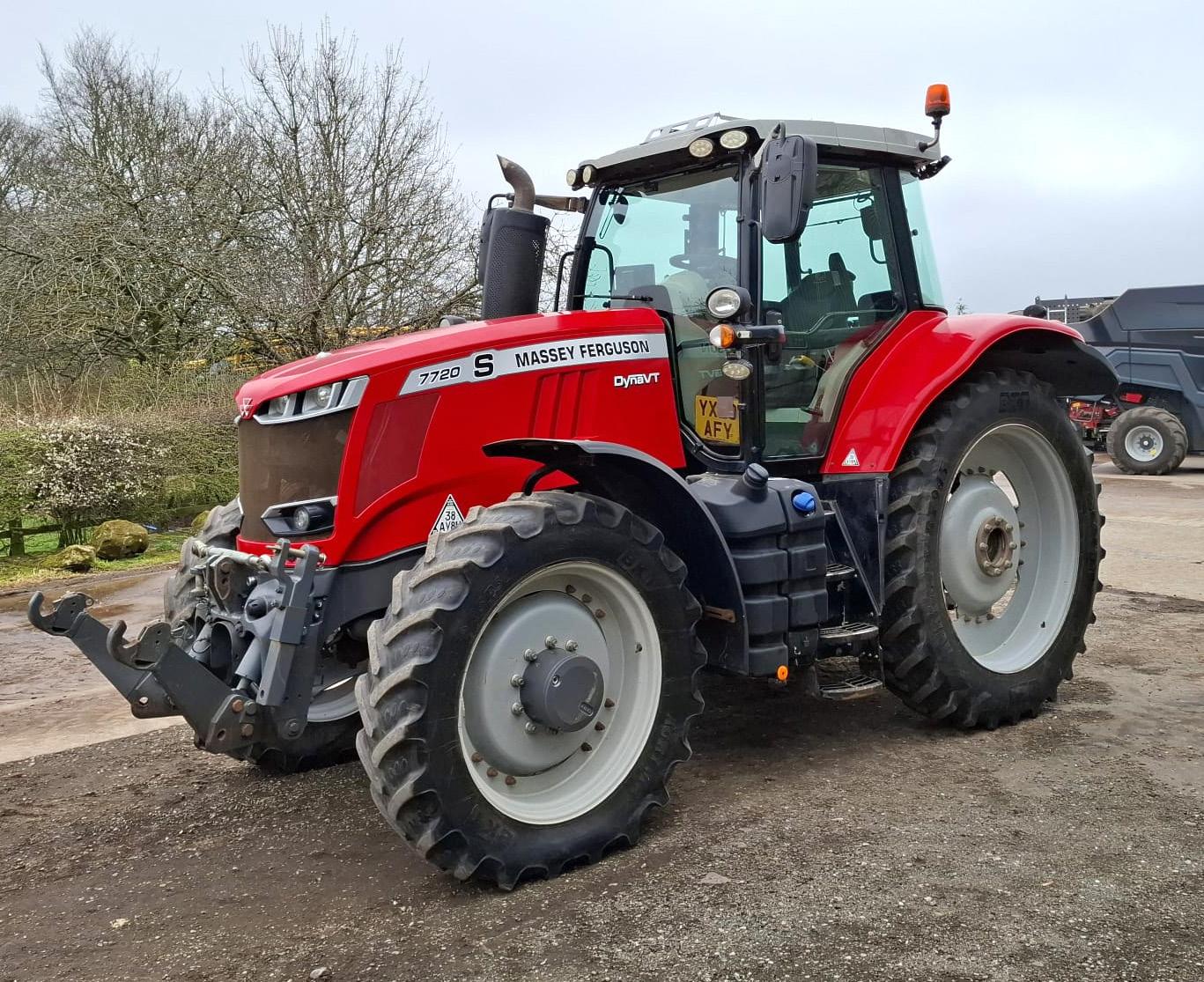 2020 Massey Ferguson 7720S DynaVT, registration YX20 AFY, 4,610 hours, 4 electric spools, front linkage, front PTO, AdBlue, Data Tag, passenger seat, air con, twin beacons, sold with unused Trelleborg 650/65 R42, Trelleborg 540/65 R30, row crop tyres sold separately, on farm from new, serial no. VKKMX65RCLB038035.